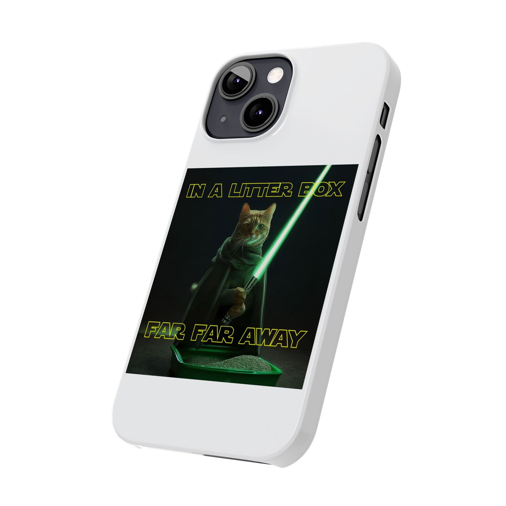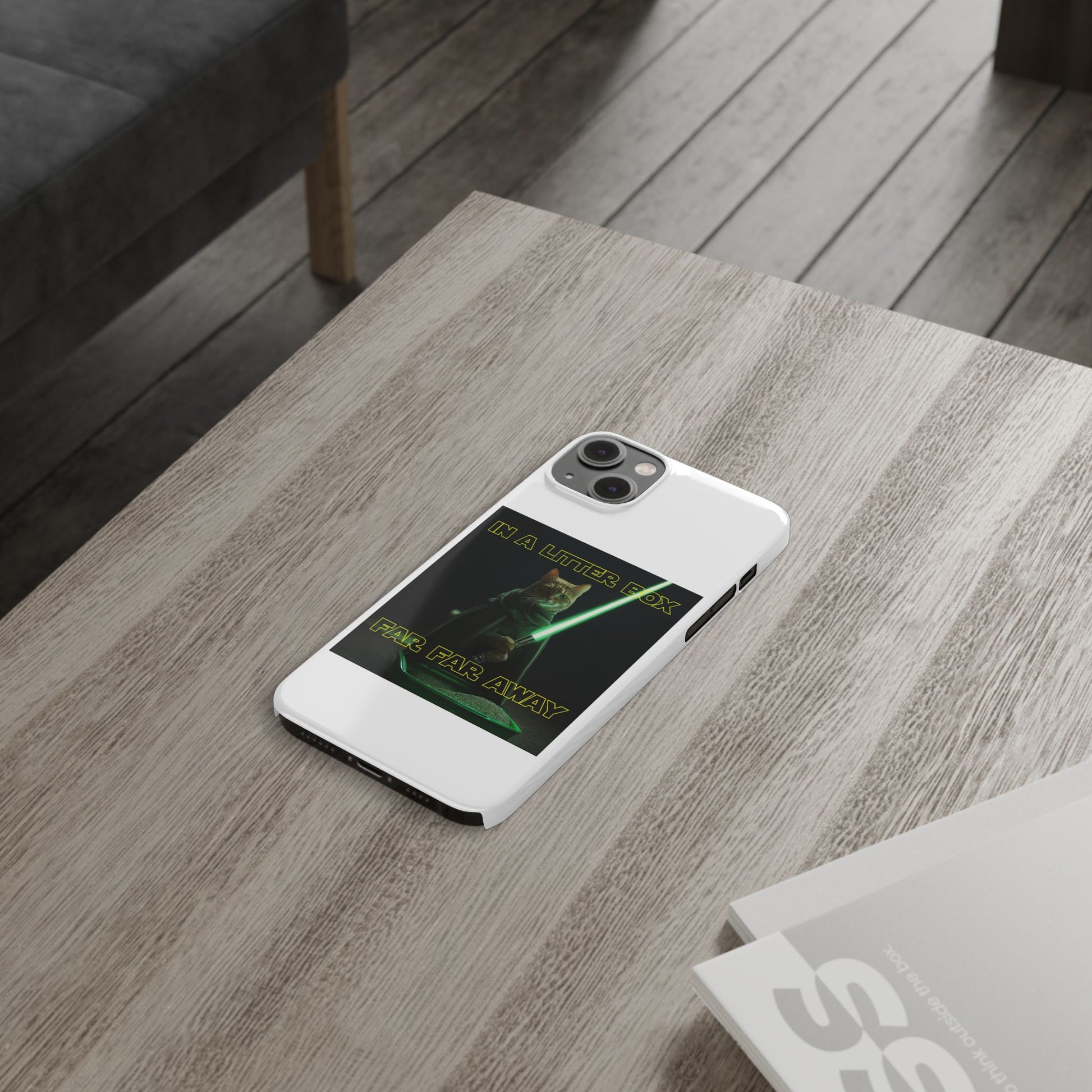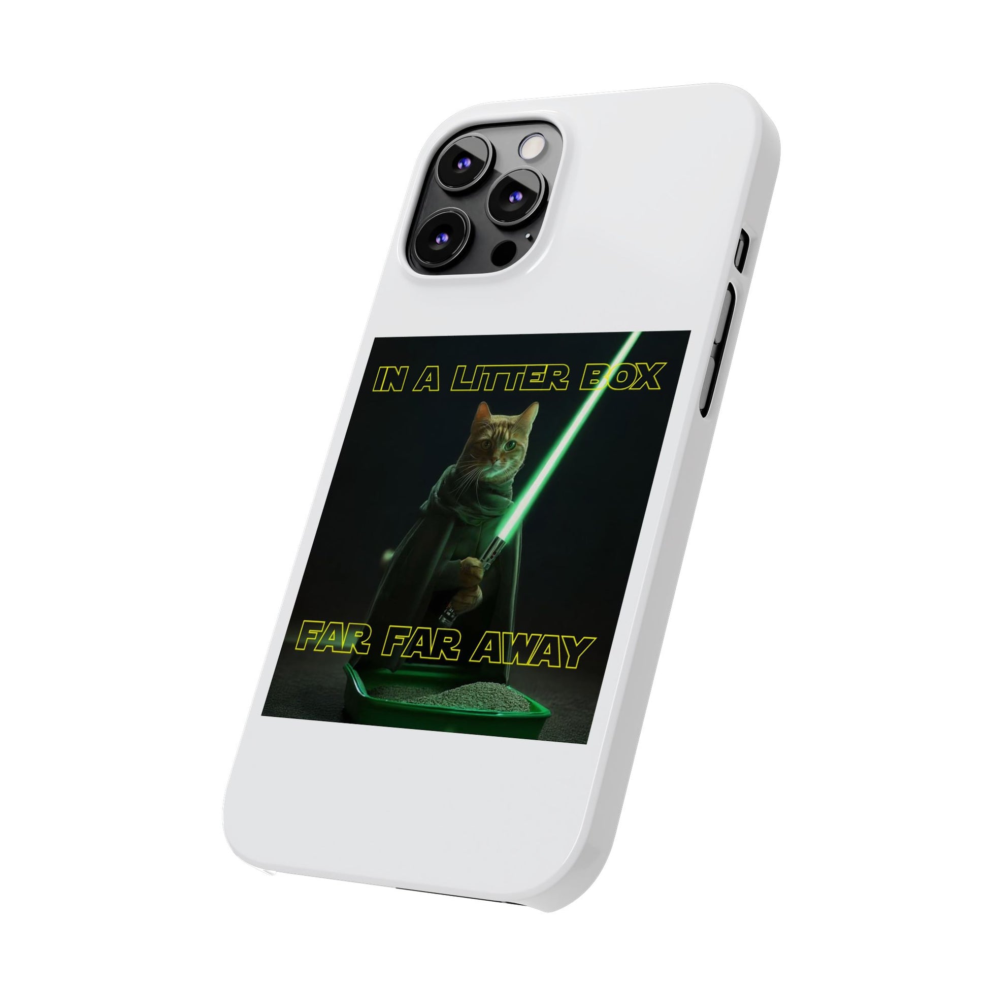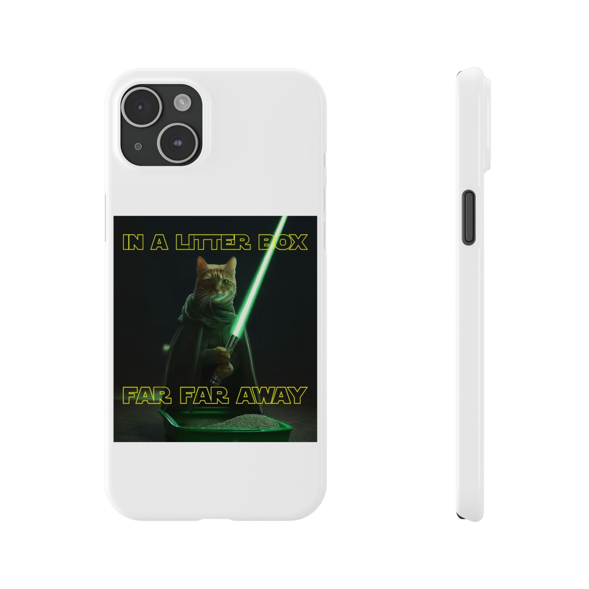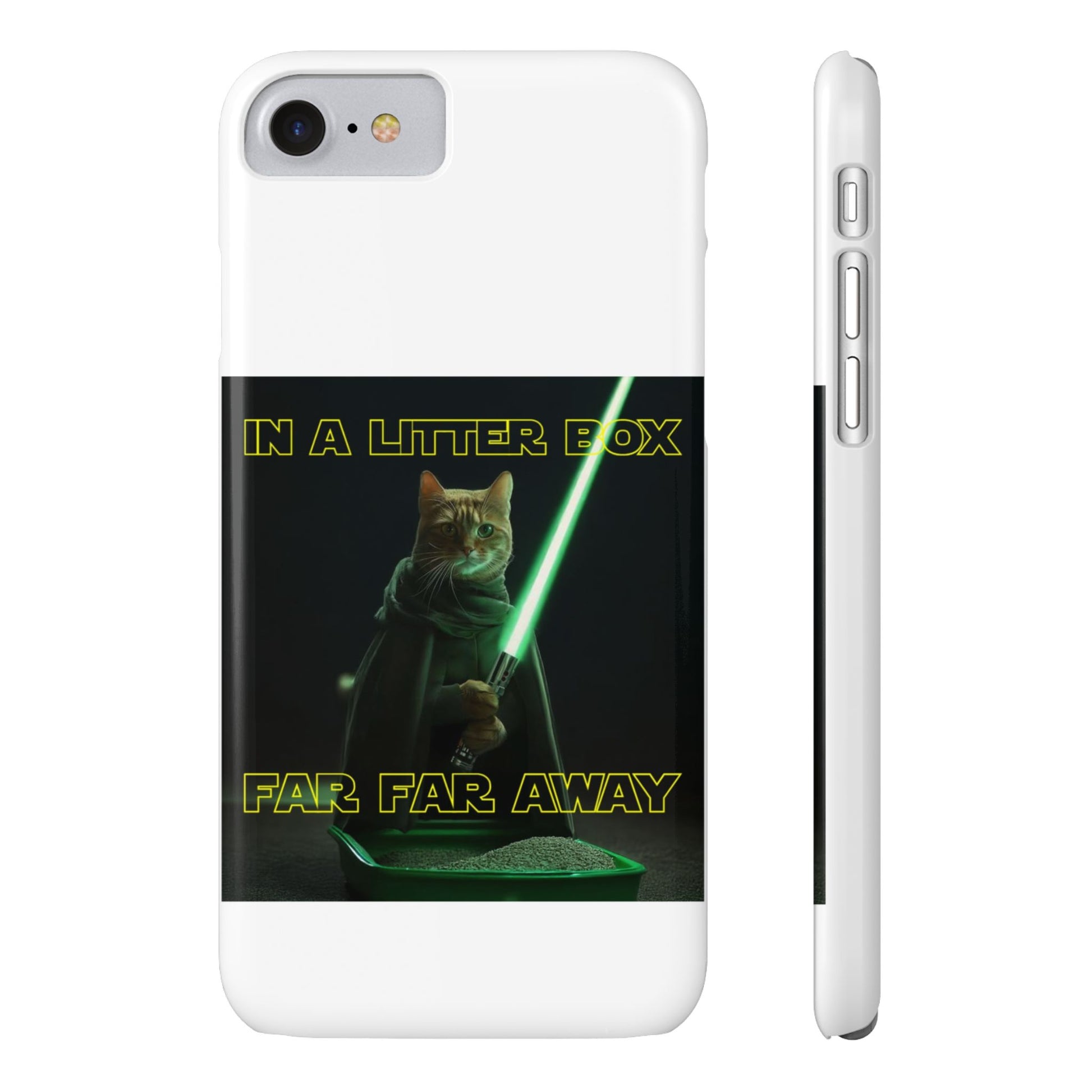 Embark on an epic journey with the "CAT IN A LITTER BOX FAR FAR AWAY" Slim Phone Cases! These ultra-flexible, super-slim cases snugly fit your device, transforming your galactic dreams into high-resolution reality. With sleek lines, a shiny finish, and featherlight build, they're the ultimate sidekick for your phone's style.