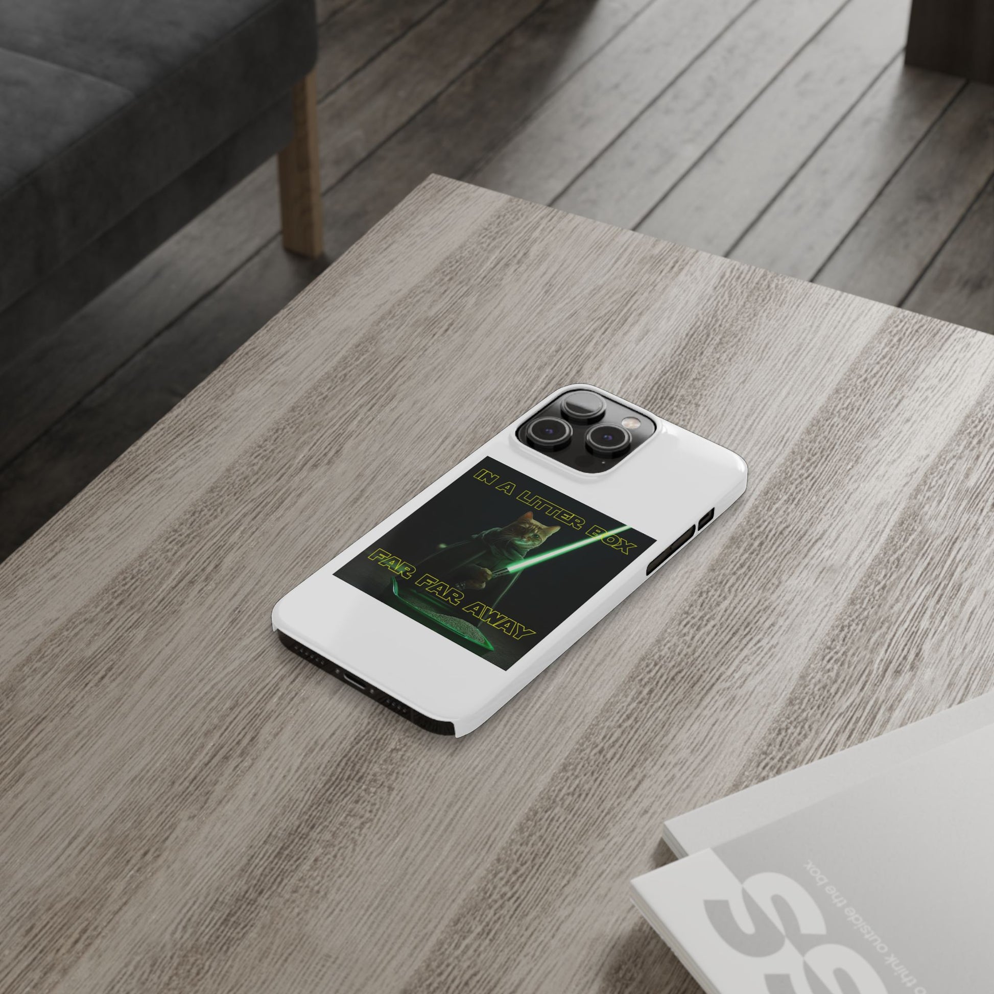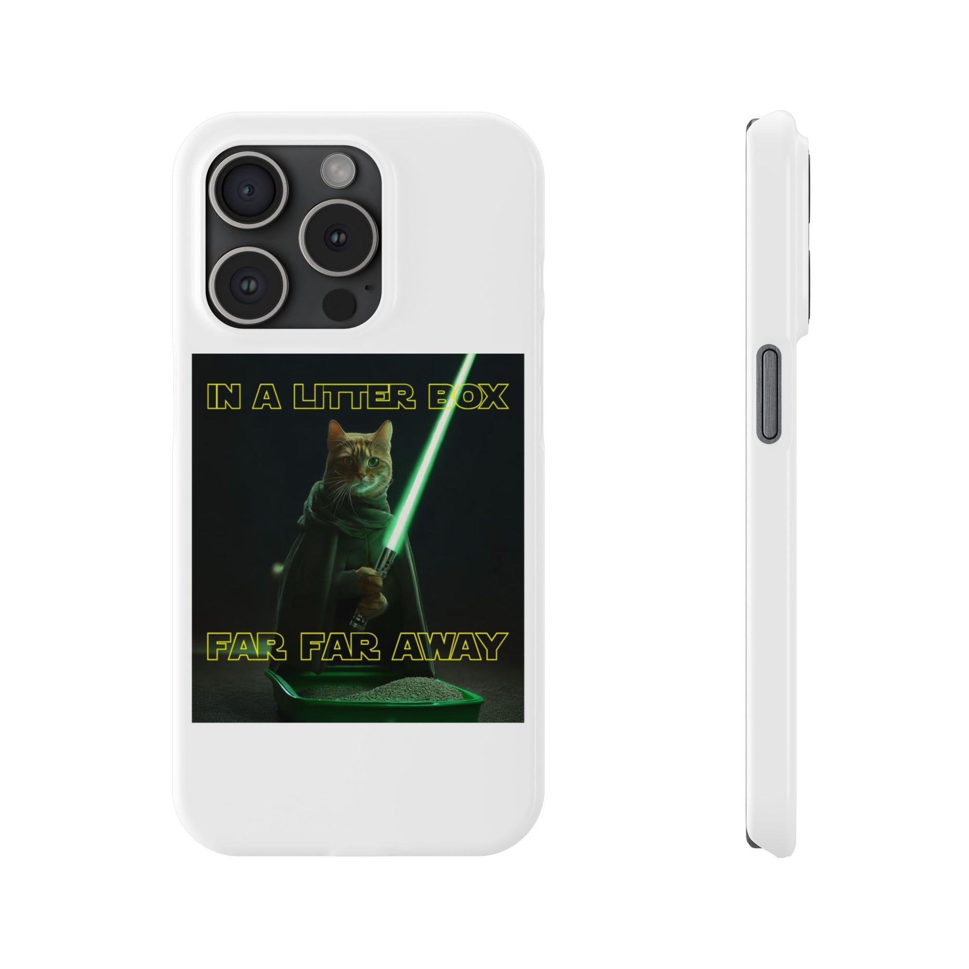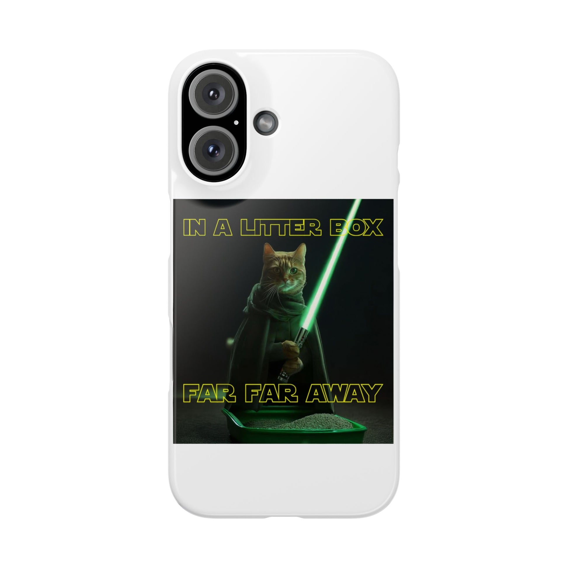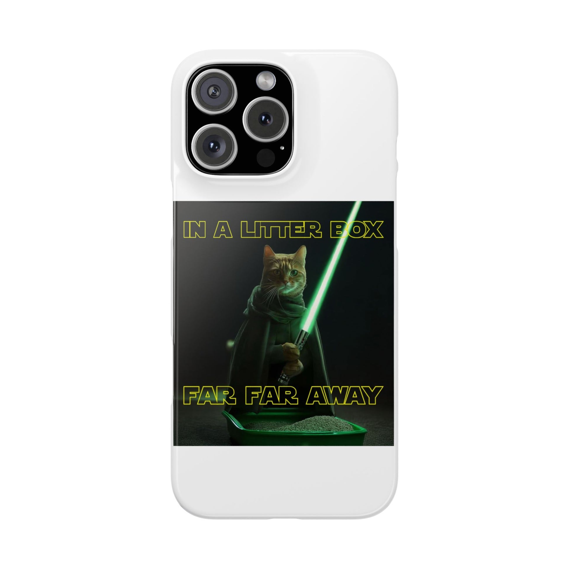 Embark on an epic journey with the "CAT IN A LITTER BOX FAR FAR AWAY" Slim Phone Cases! These ultra-flexible, super-slim cases snugly fit your device, transforming your galactic dreams into high-resolution reality. With sleek lines, a shiny finish, and featherlight build, they're the ultimate sidekick for your phone's style.