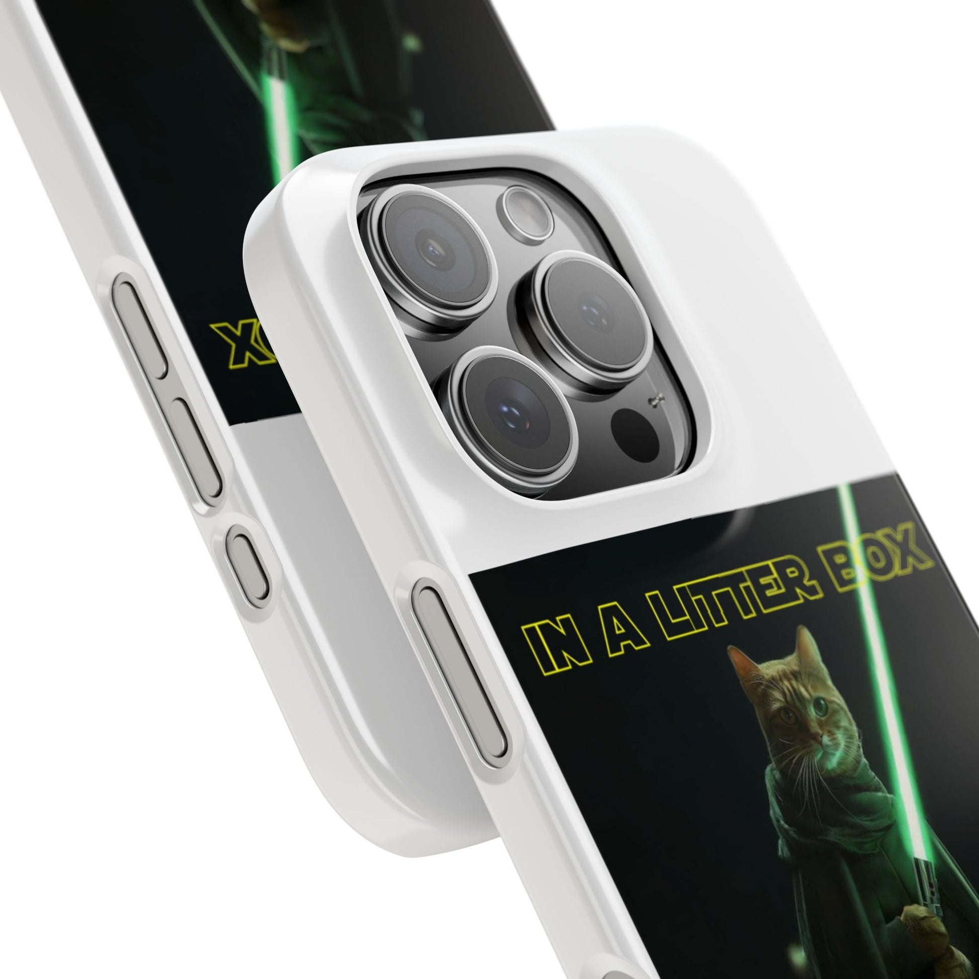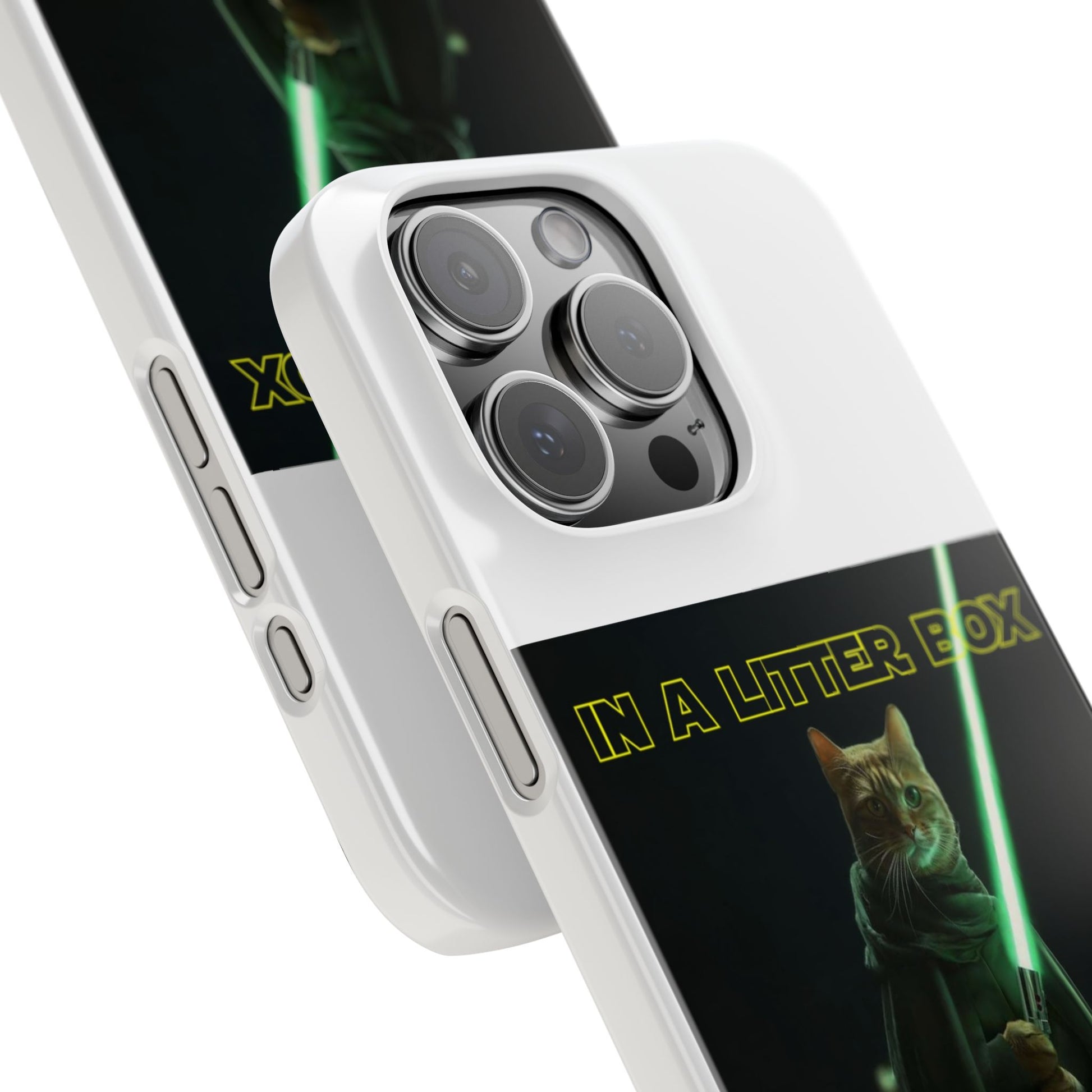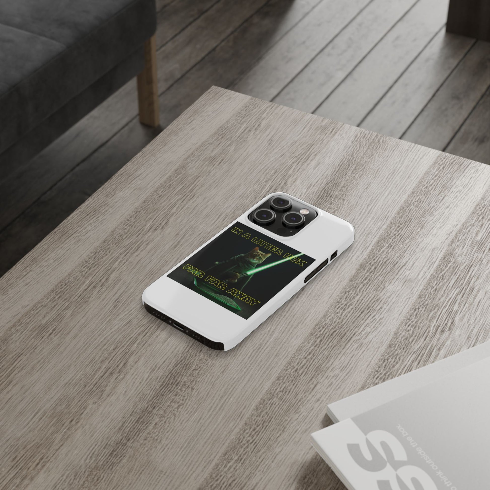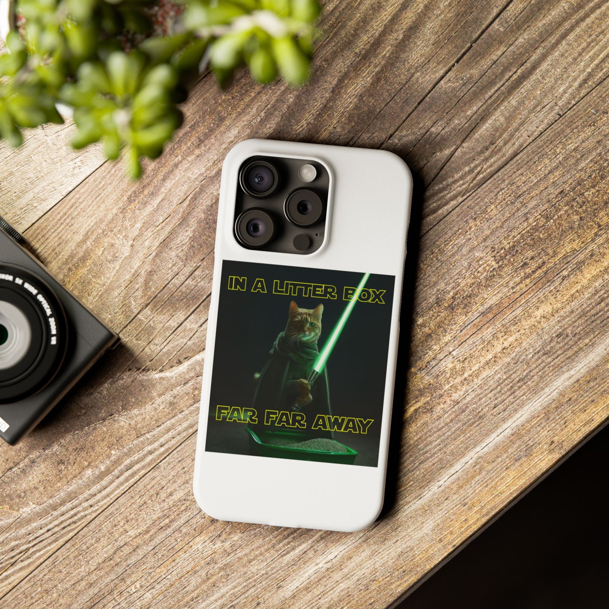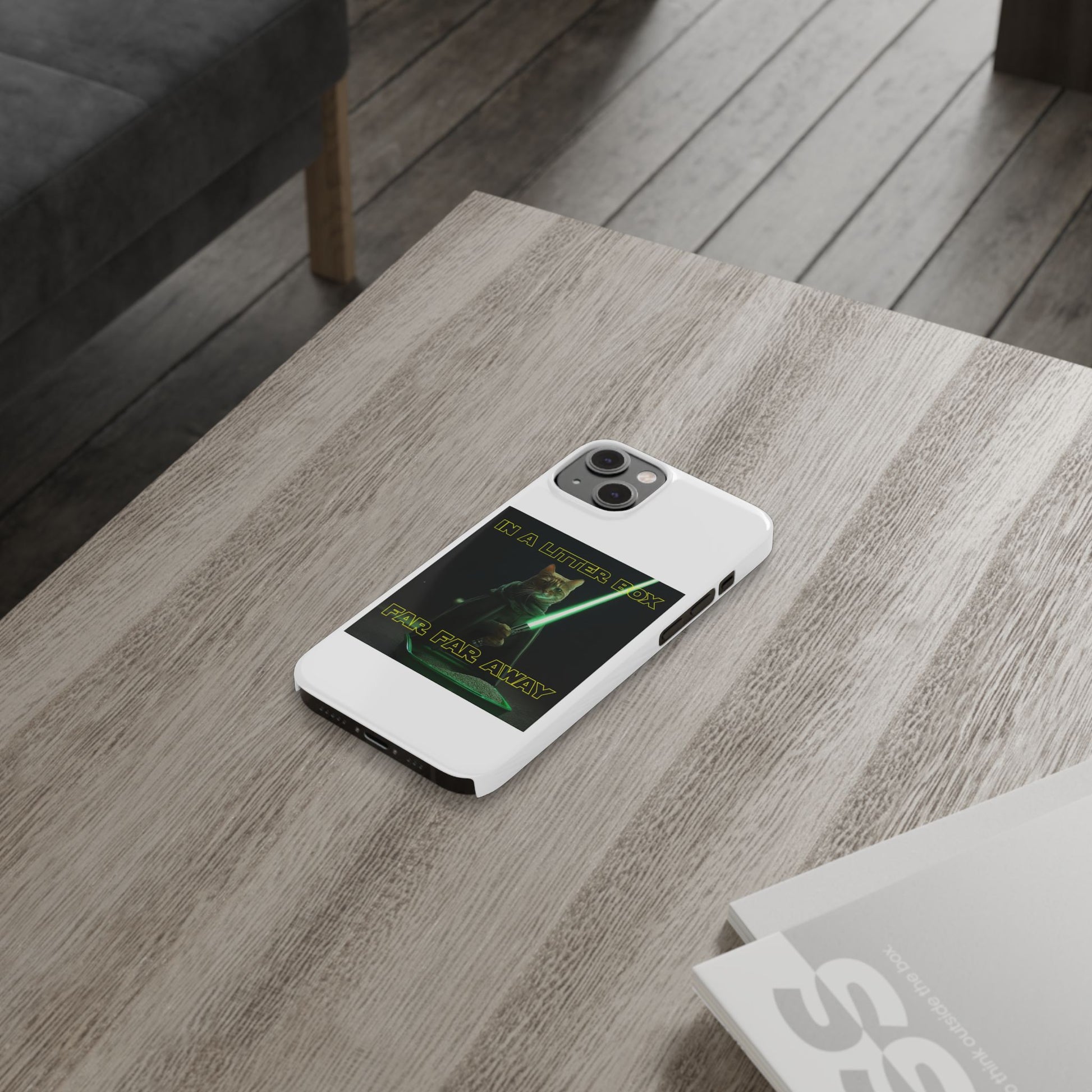 Embark on an epic journey with the "CAT IN A LITTER BOX FAR FAR AWAY" Slim Phone Cases! These ultra-flexible, super-slim cases snugly fit your device, transforming your galactic dreams into high-resolution reality. With sleek lines, a shiny finish, and featherlight build, they're the ultimate sidekick for your phone's style.