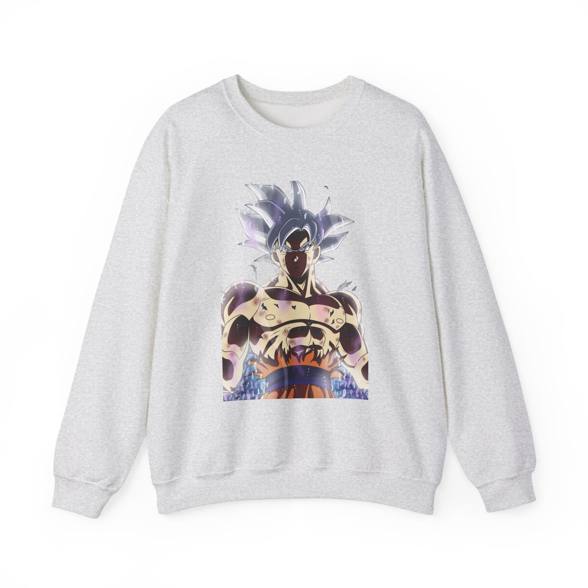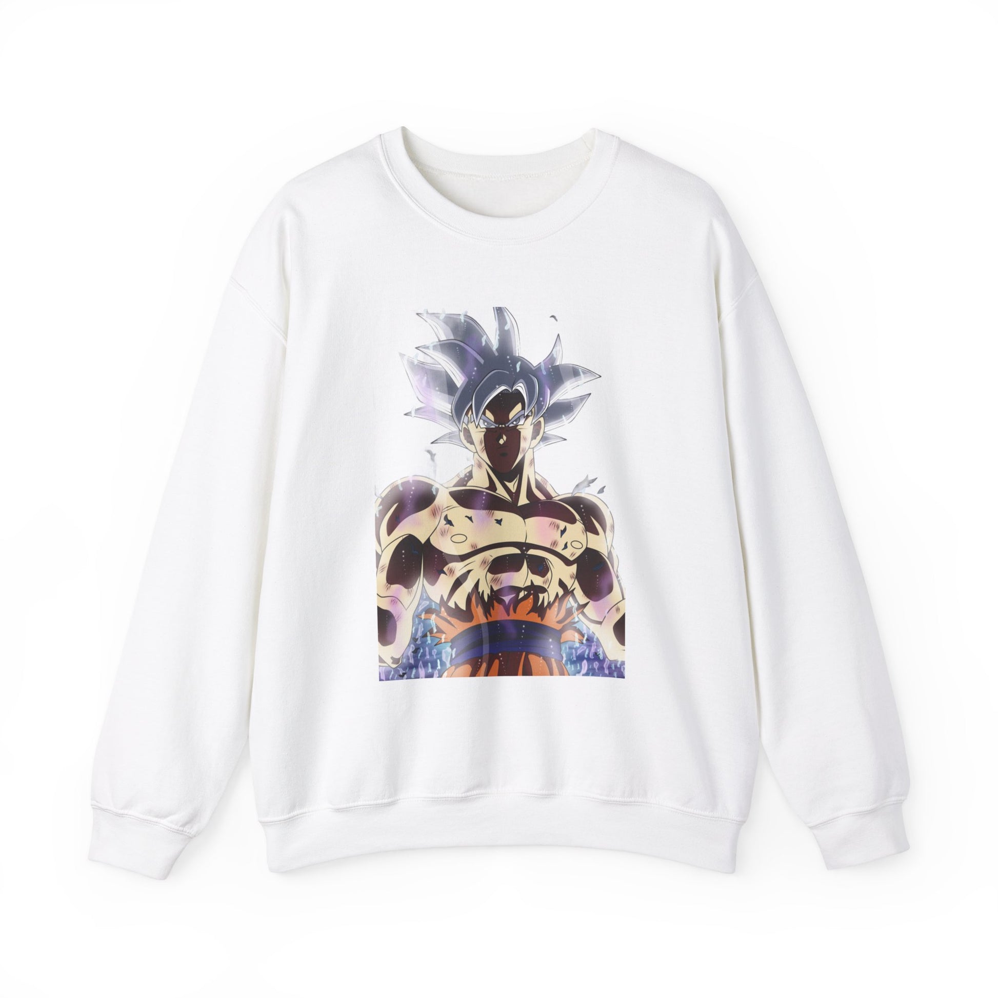 Ultra Power White Hair Dragon Ball Super Goku ideal for any situation, this unisex heavy blend crewneck sweatshirt is pure comfort. Made from a medium-heavy fabric blend of 50% cotton and 50% polyester, it feels cozy and is perfect for colder months. The classic fit and crew neckline deliver a comfy wearing experience with a clean-cut style. This sweatshirt is relevant to fans of Dragon Ball Super Goku and fits into casual everyday wear or as a cozy option for cooler weather. It is perfect for gifting on birthdays, holidays, and special occasions.