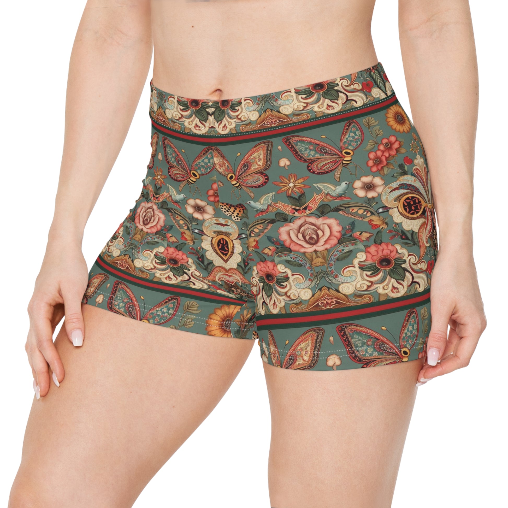Floral Butterfly Women's Shorts - Gucci-inspired Retro Revival design with playful paisley patterns