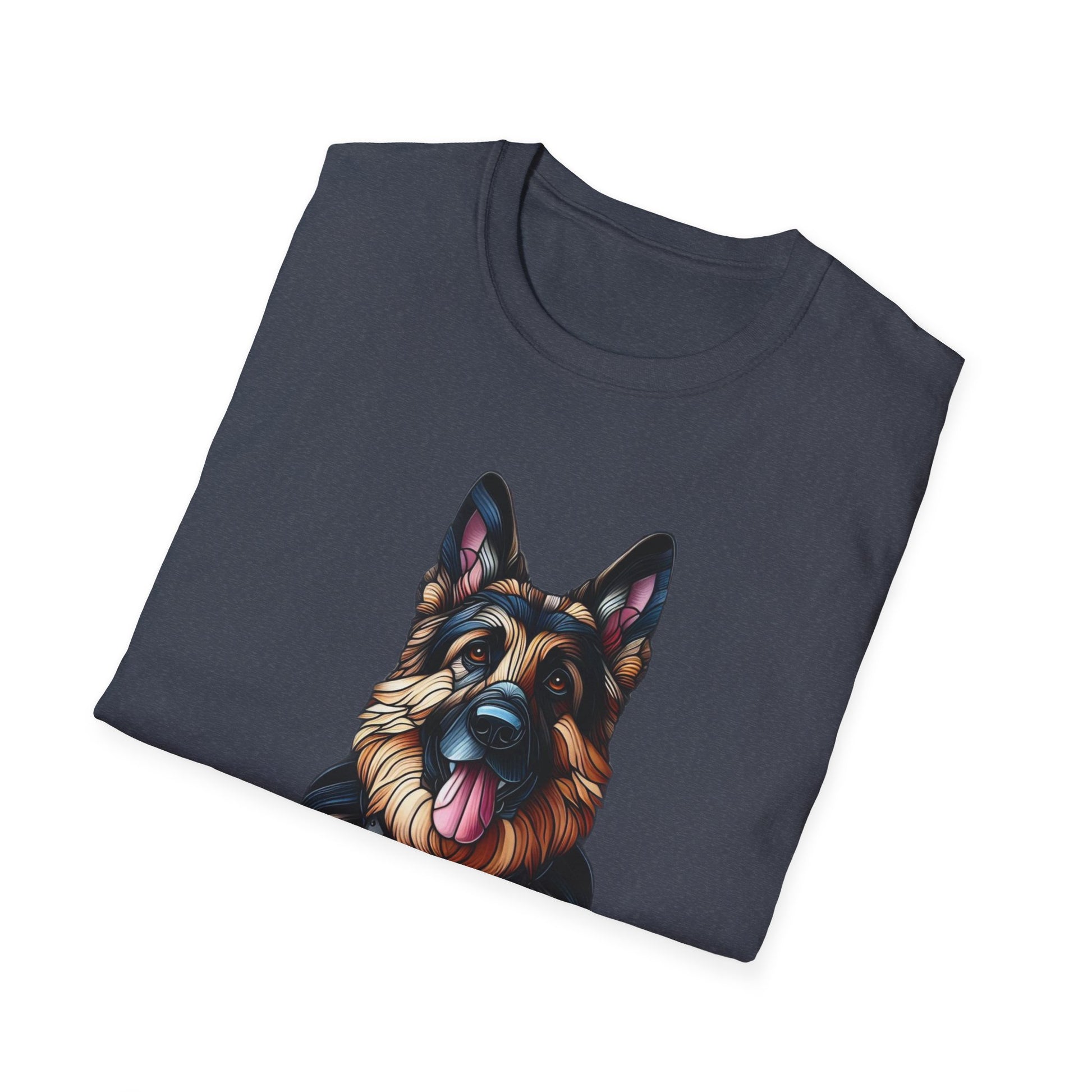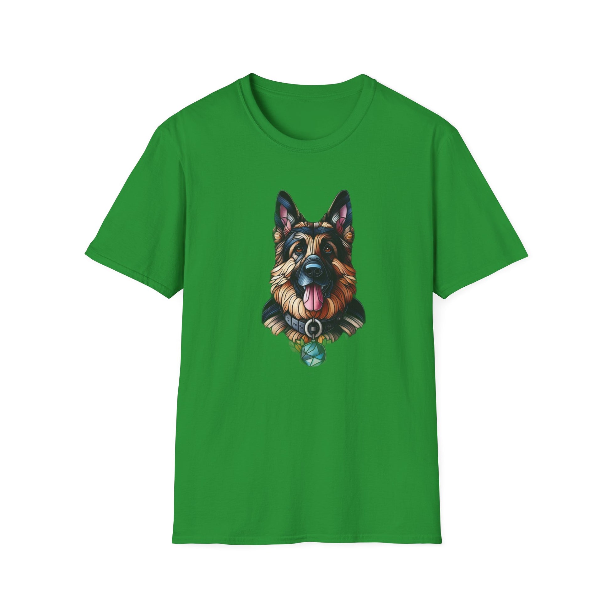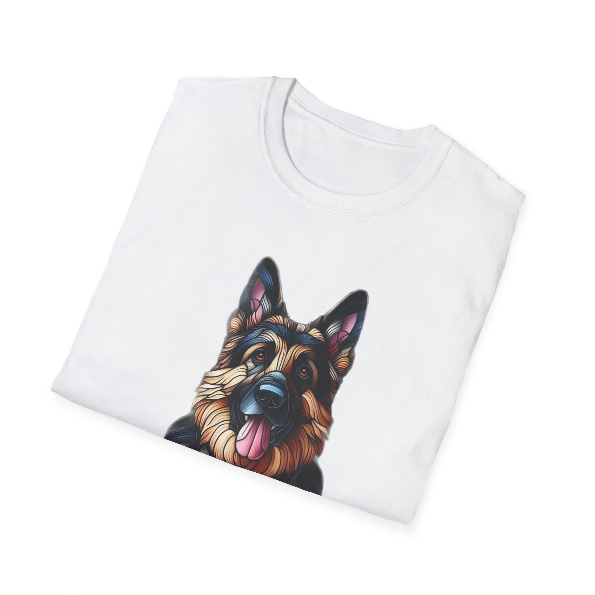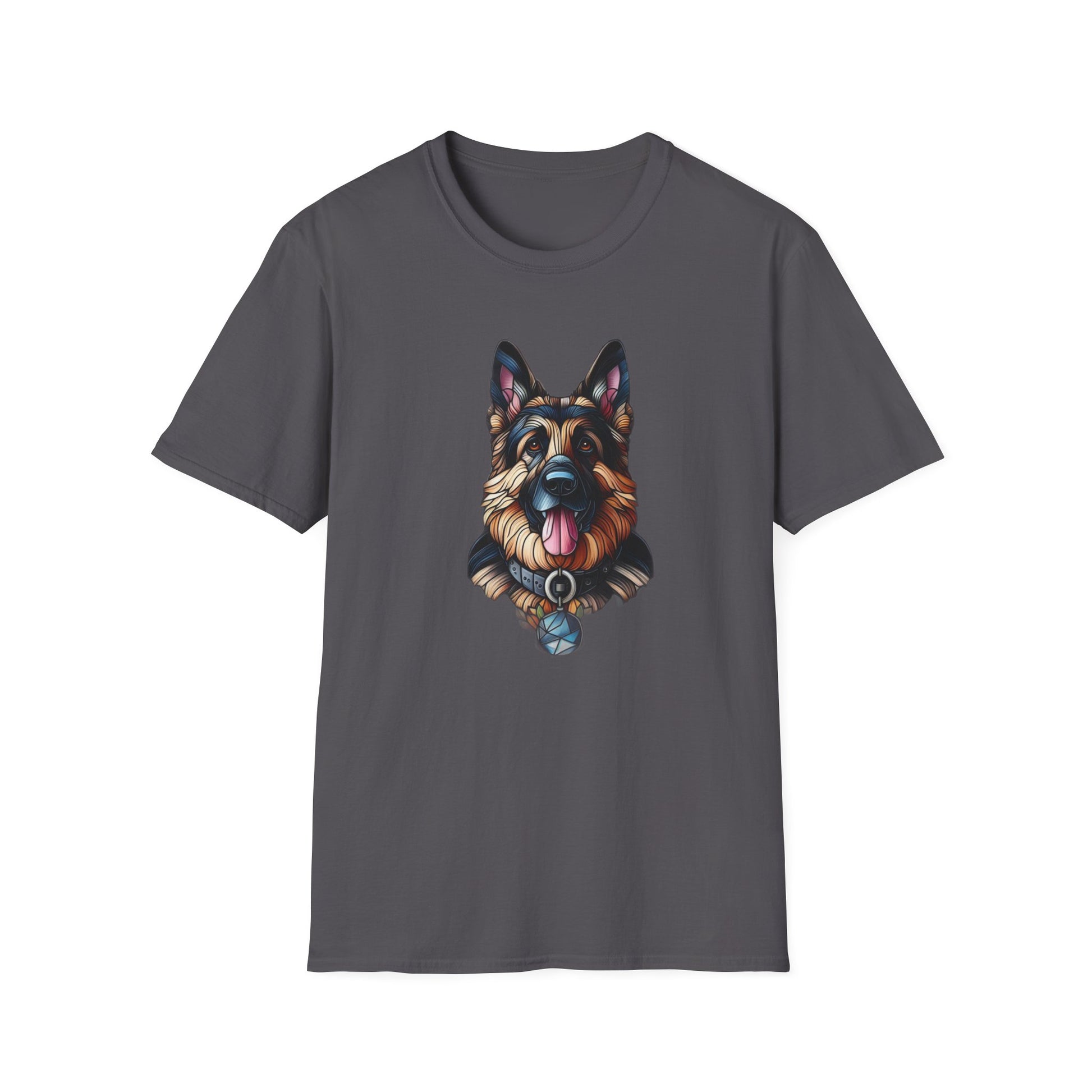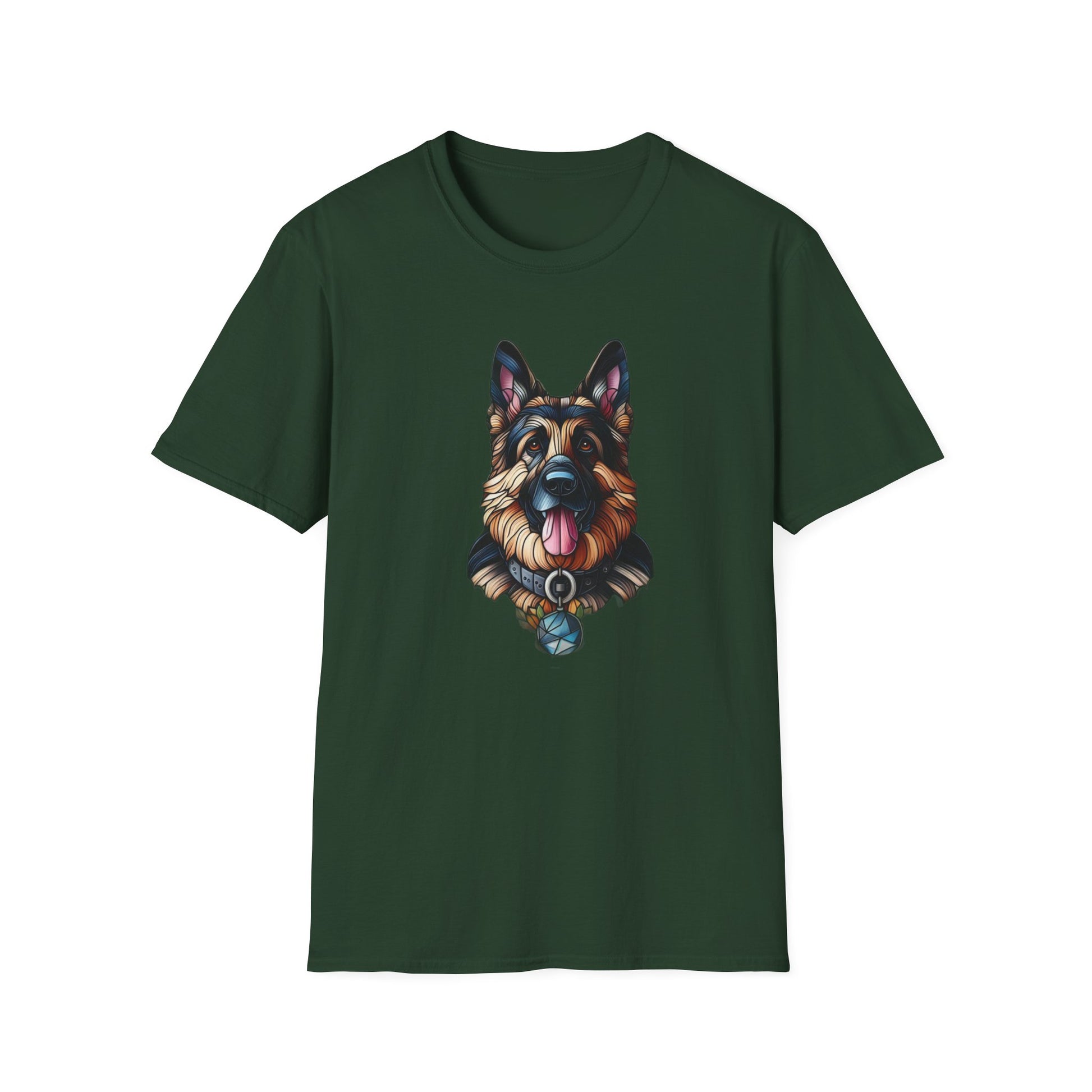 German Shepherd Stained Glass Unisex Softstyle T-Shirt