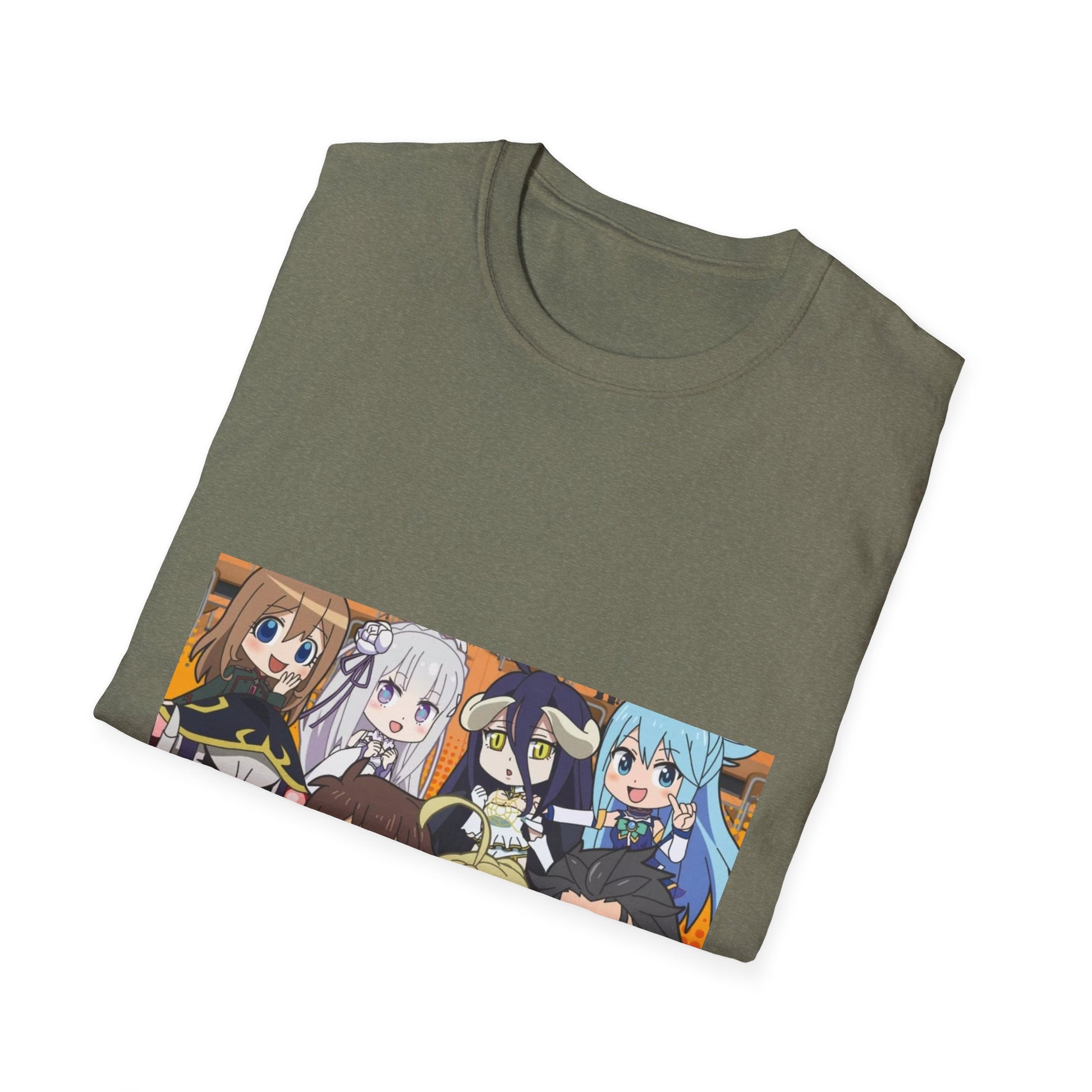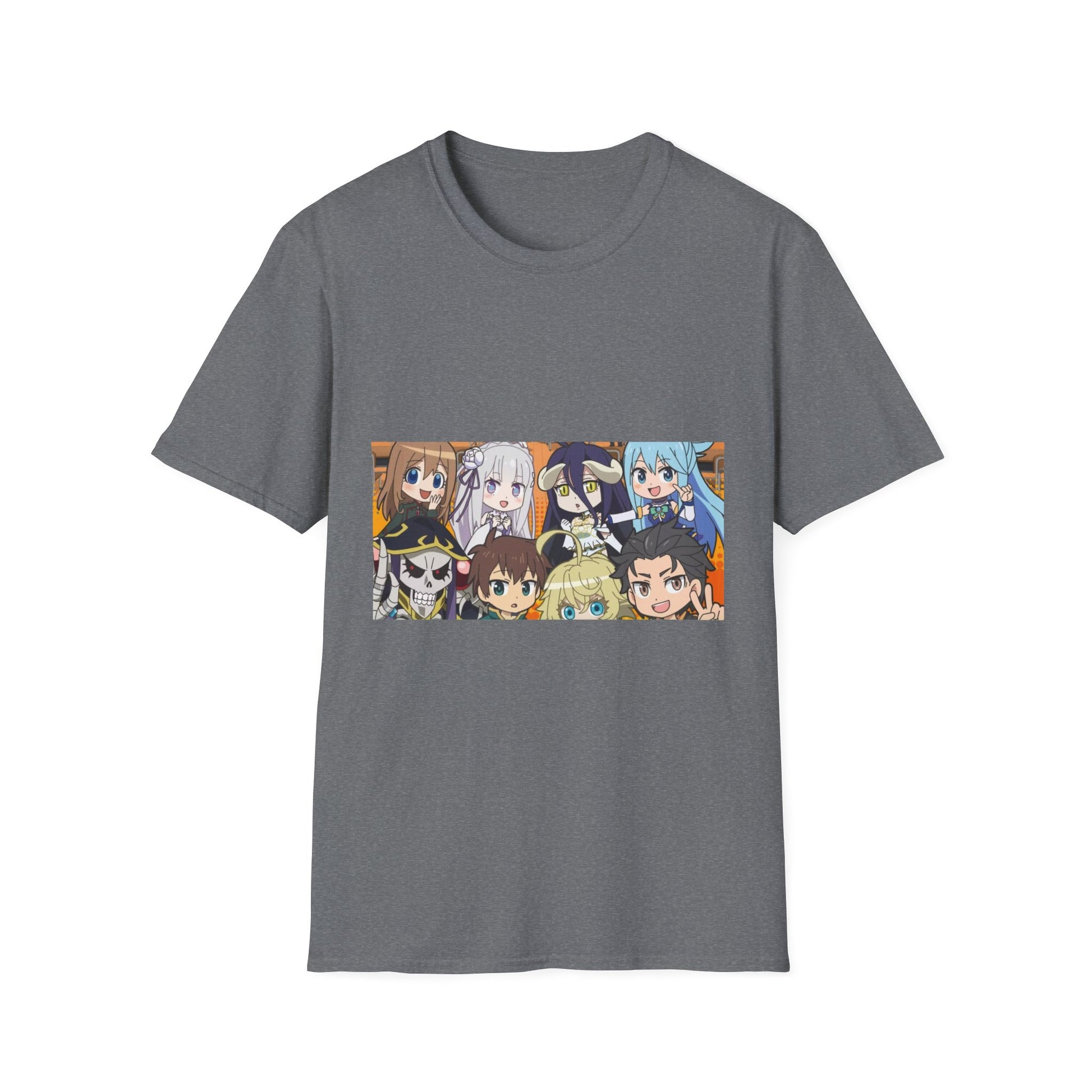 Isekai Quartet T-Shirt The unisex soft-style t-shirt puts a new spin on casual comfort. Made from very soft materials, this tee is 100% cotton for solid colors. Heather colors and sports grey include polyester. The shoulders have twill tape for improved durability. There are no side seams. The collar is made with ribbed knitting to prevent curling damage. Isekai Quartet T-Shirt