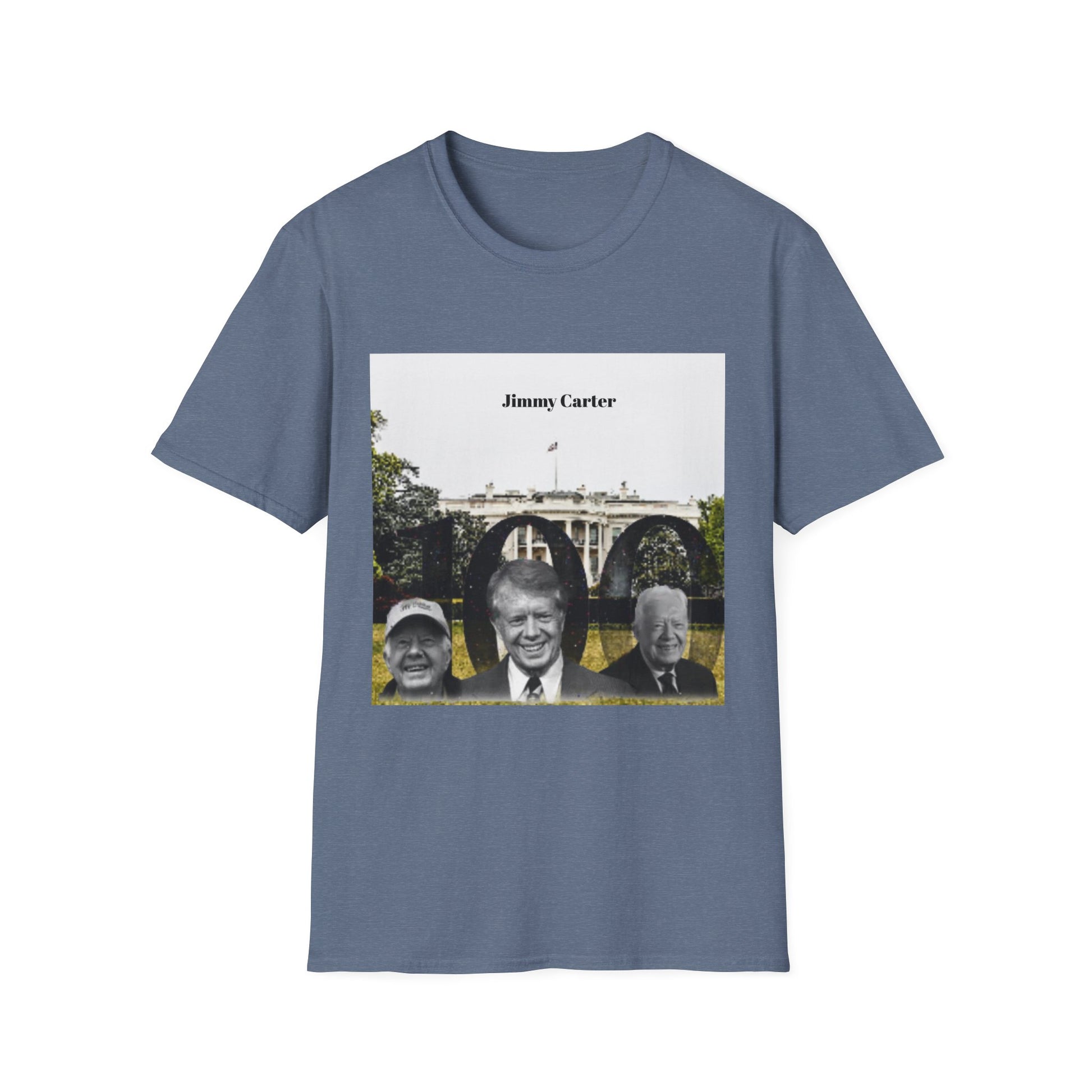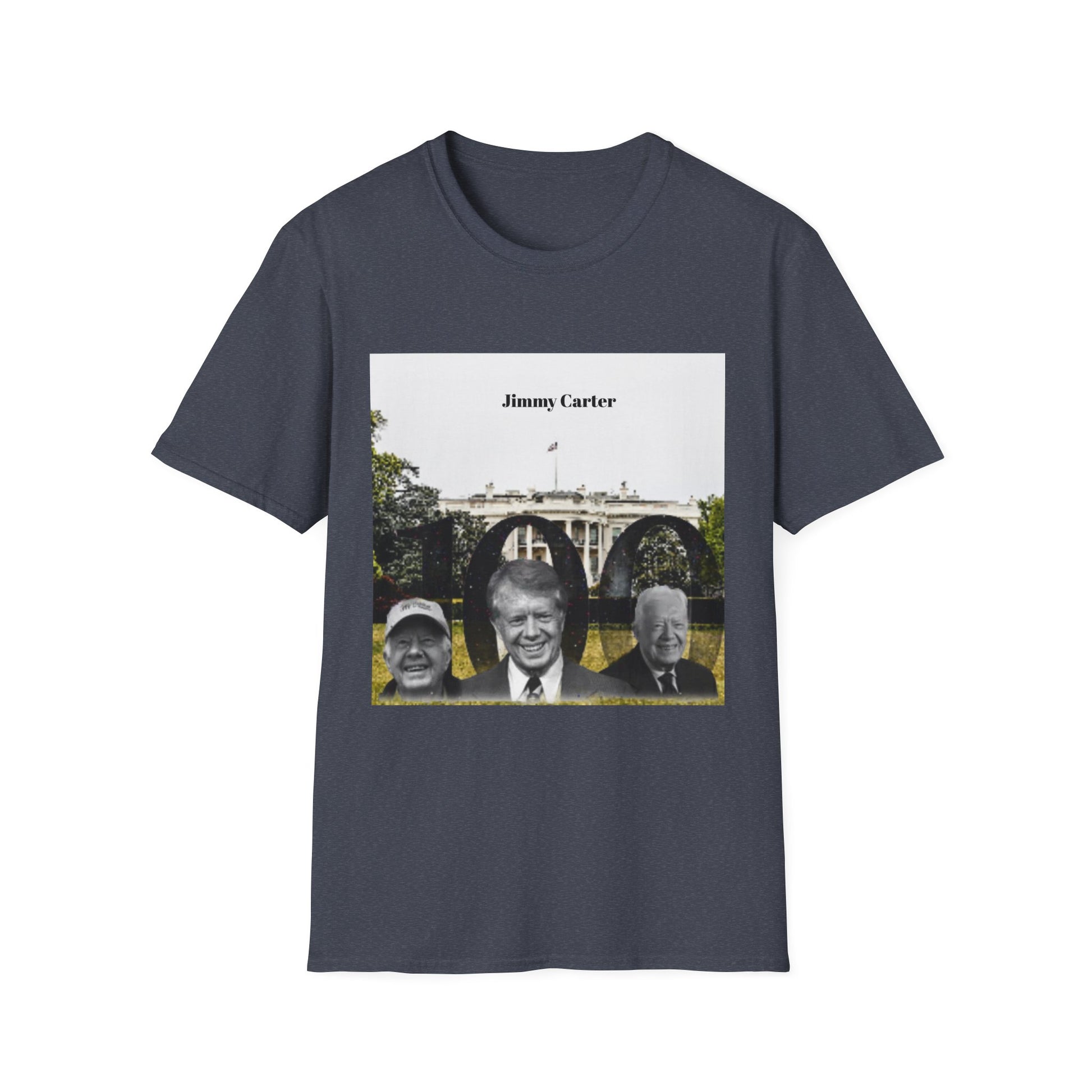 The unisex soft-style t-shirt puts a new spin on casual comfort. Made from very soft materials, this tee is 100% cotton for solid colors. Heather colors and sports grey include polyester. The shoulders have twill tape for improved durability. There are no side seams. The collar is made with ribbed knitting to prevent curling damage. Jimmy Carter