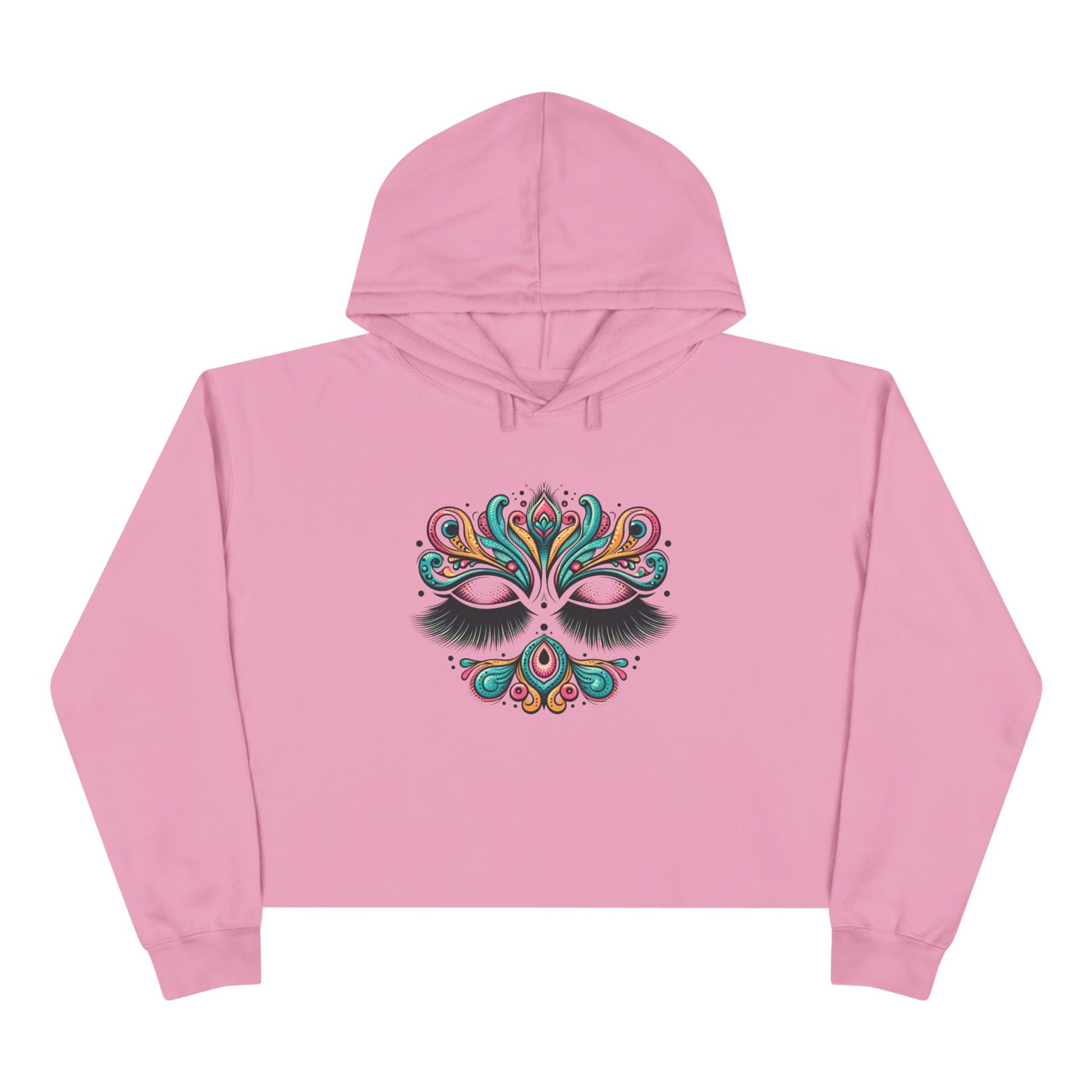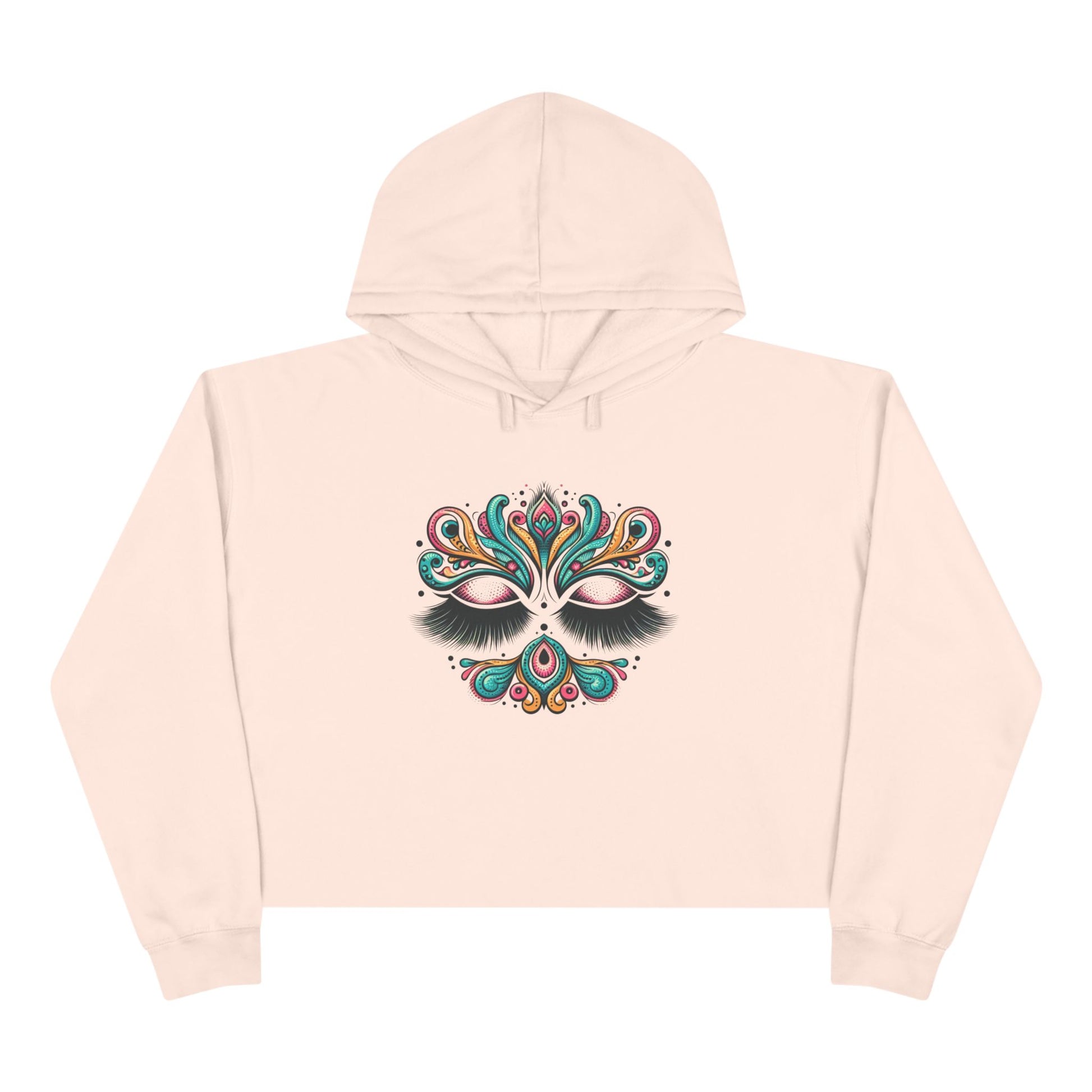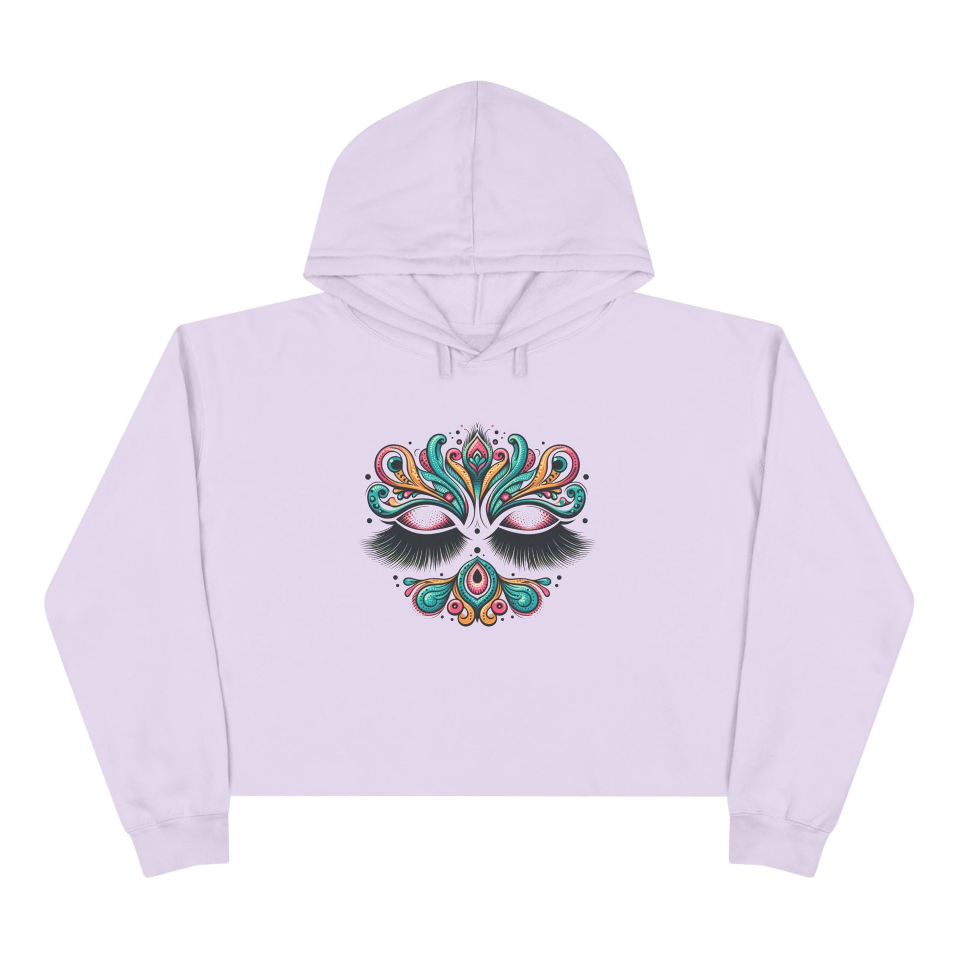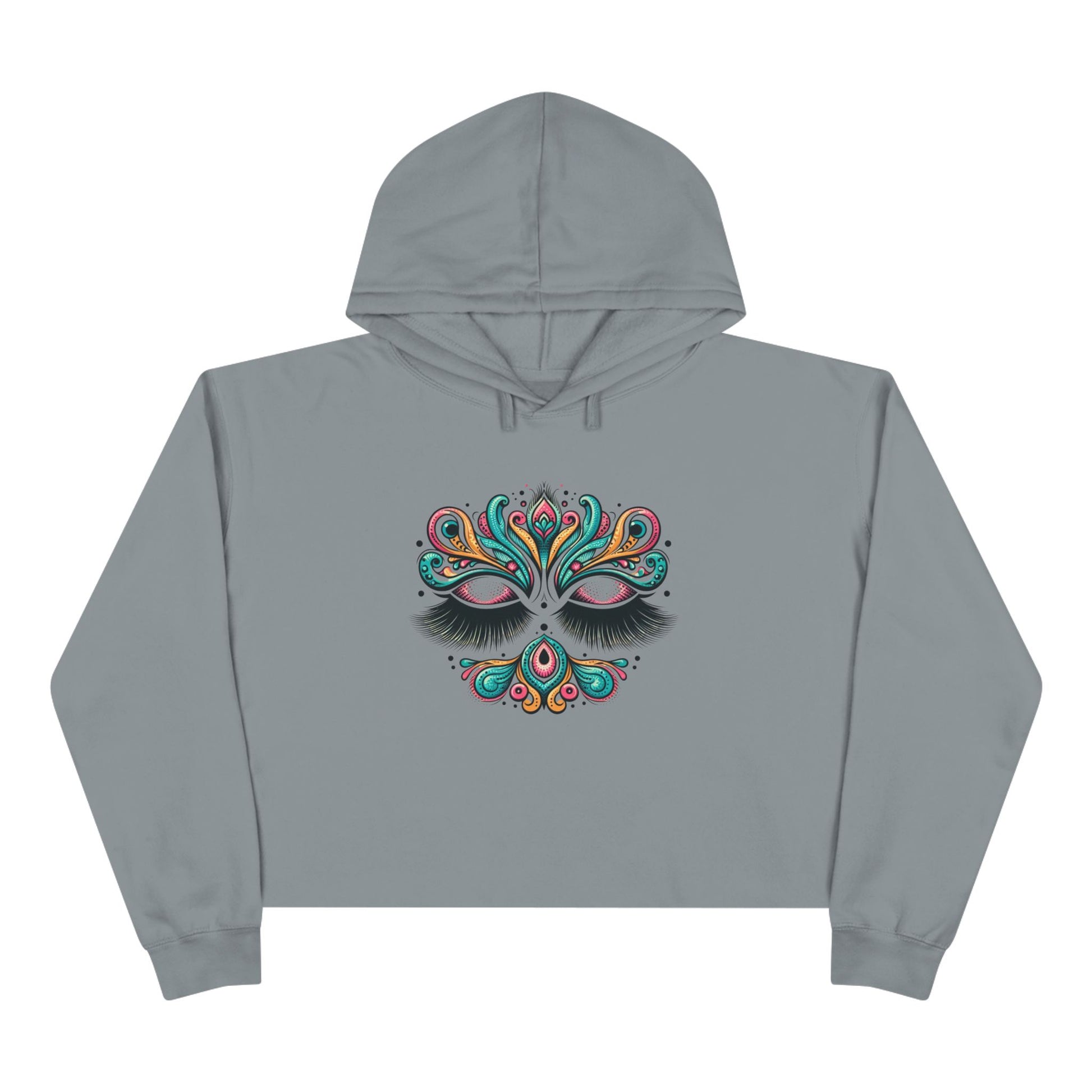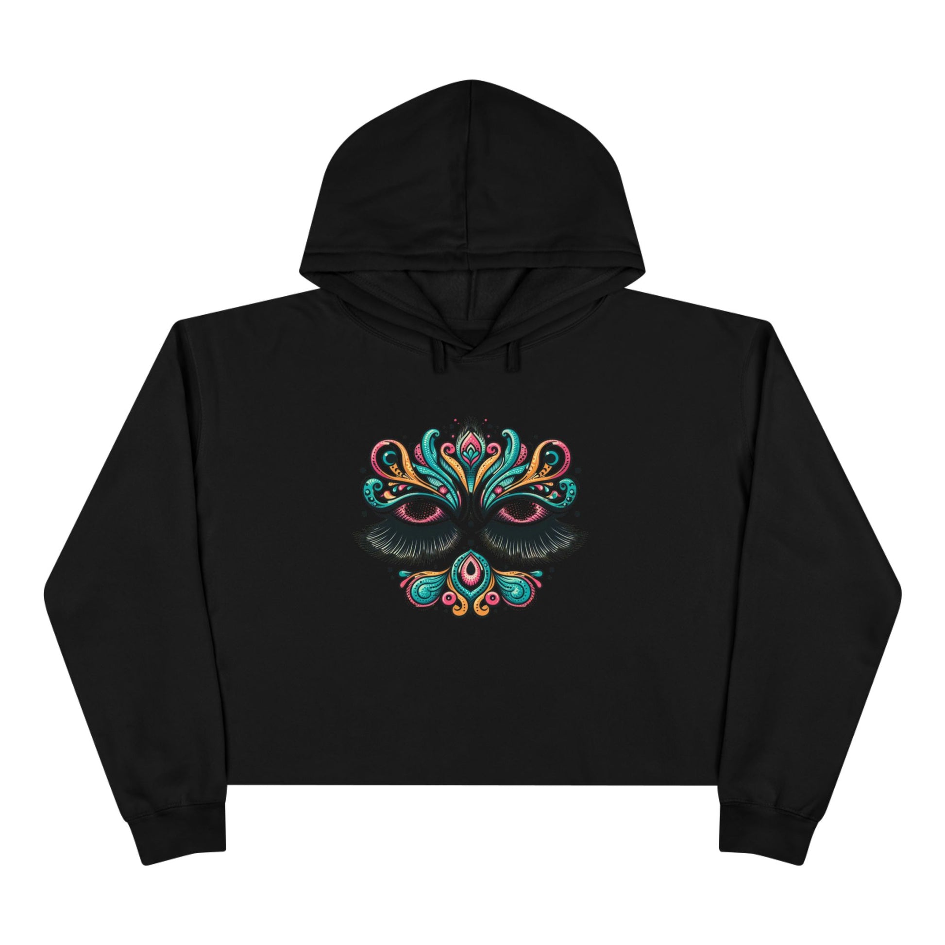 Lashes Boho Chic Crop Hoodie with Vibrant Peacock Design - Perfect for Festivals and Everyday Wear