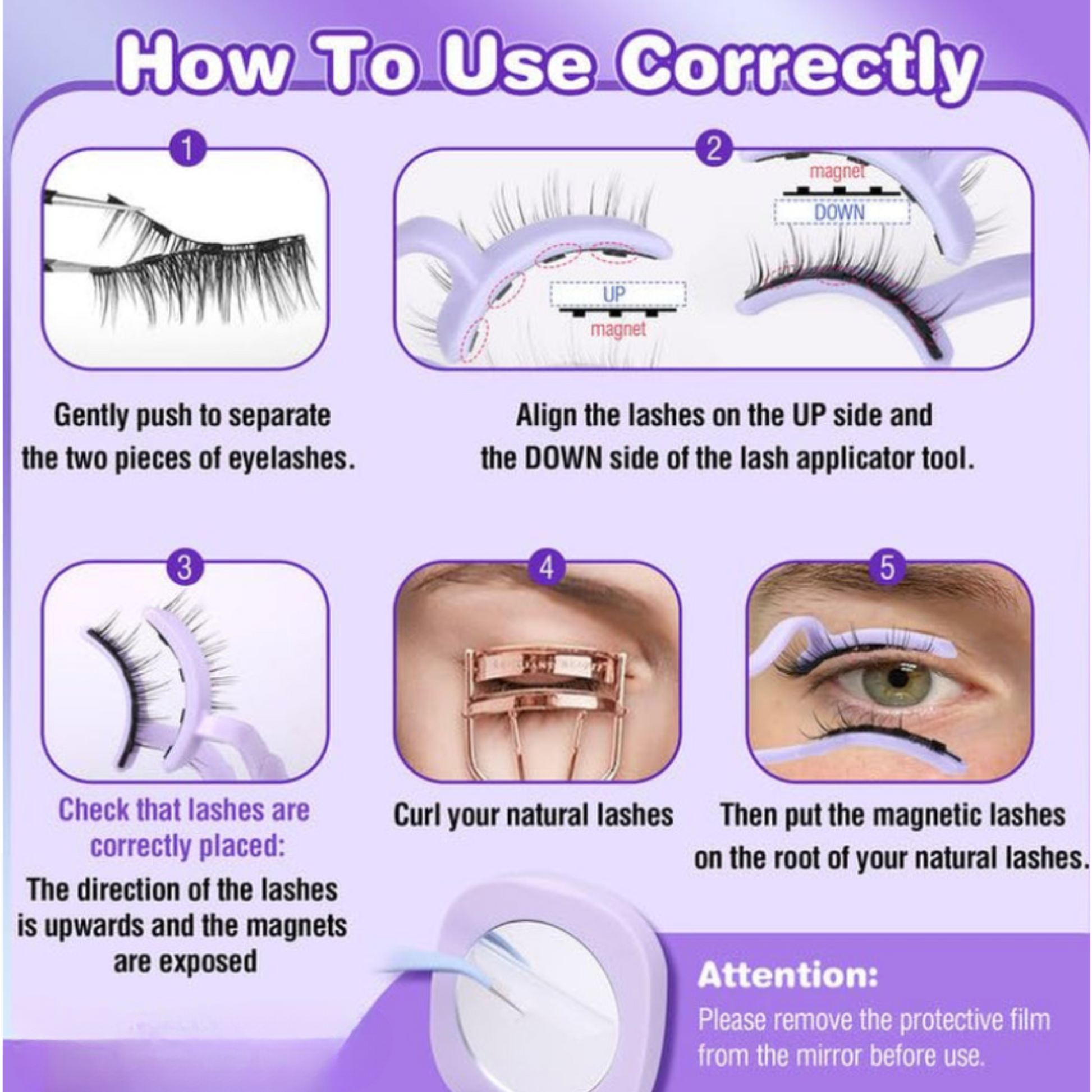 Each lash features four strong magnets for a secure hold. Easily fix the magnetic lashes to your natural lashes with the applicator. Quick and skillful application will save you valuable makeup time. Perfect for daily use, these lashes can be applied and removed in seconds.