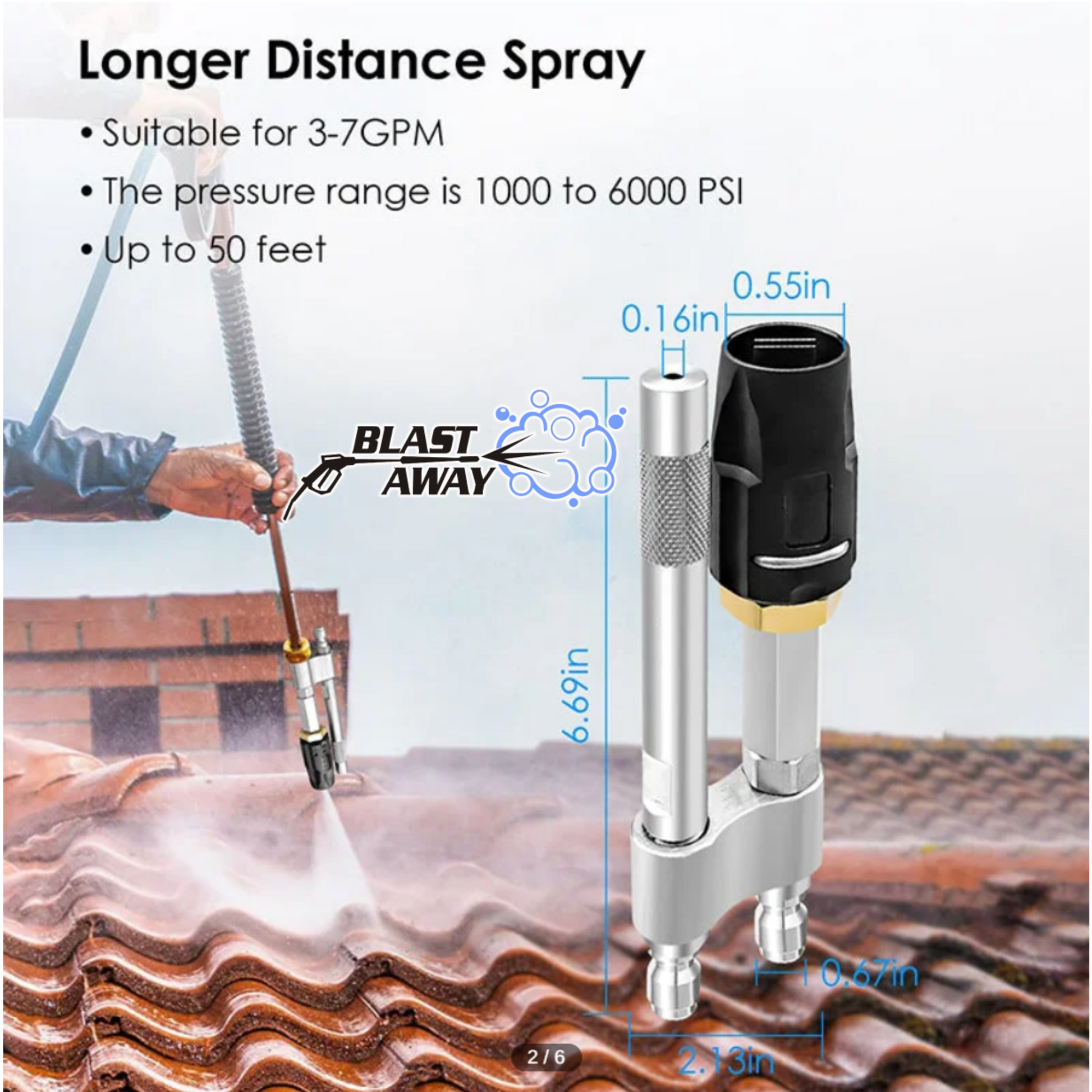 - **4.0mm long-range nozzle**: Reach up to 50 feet, providing extended coverage for hard-to-reach areas.