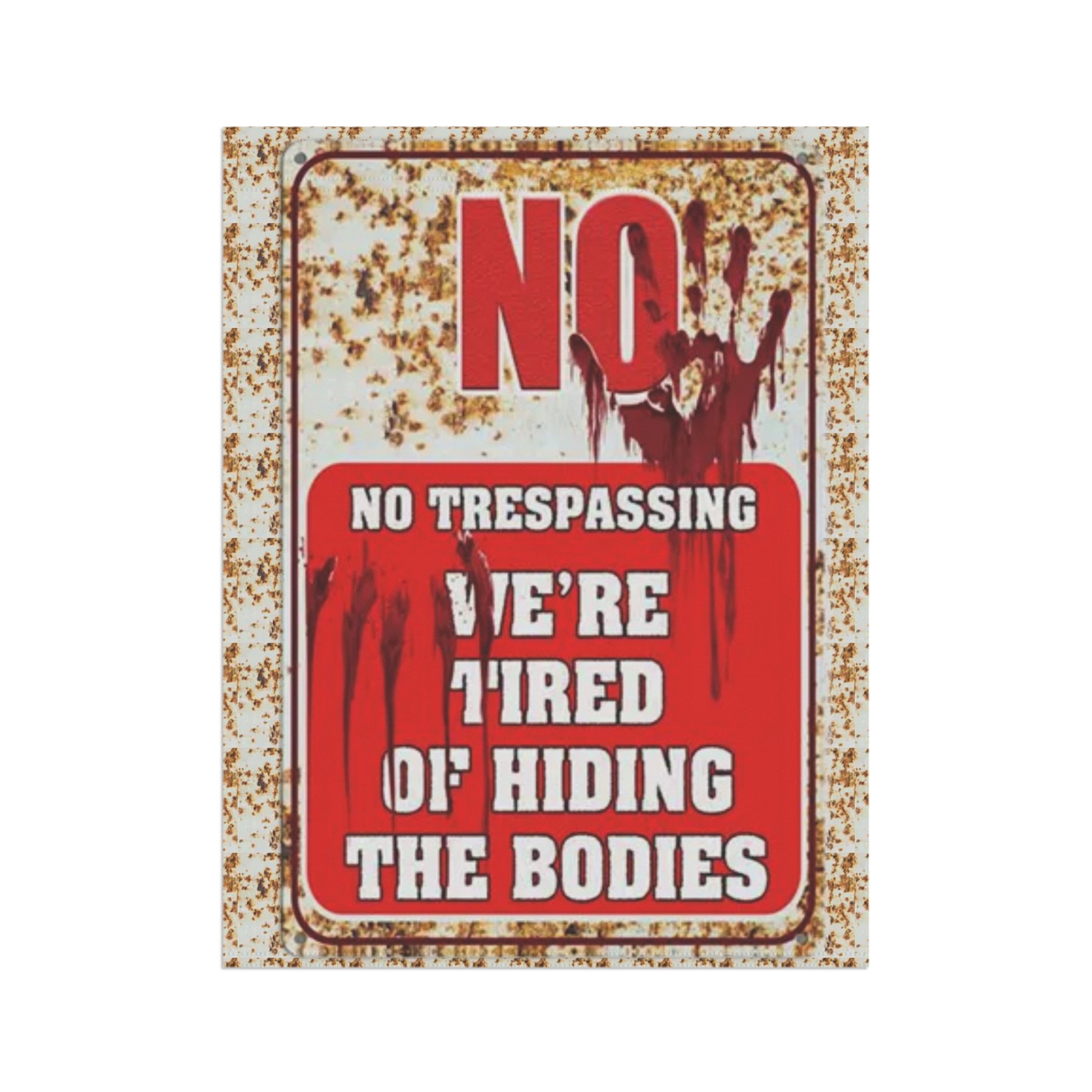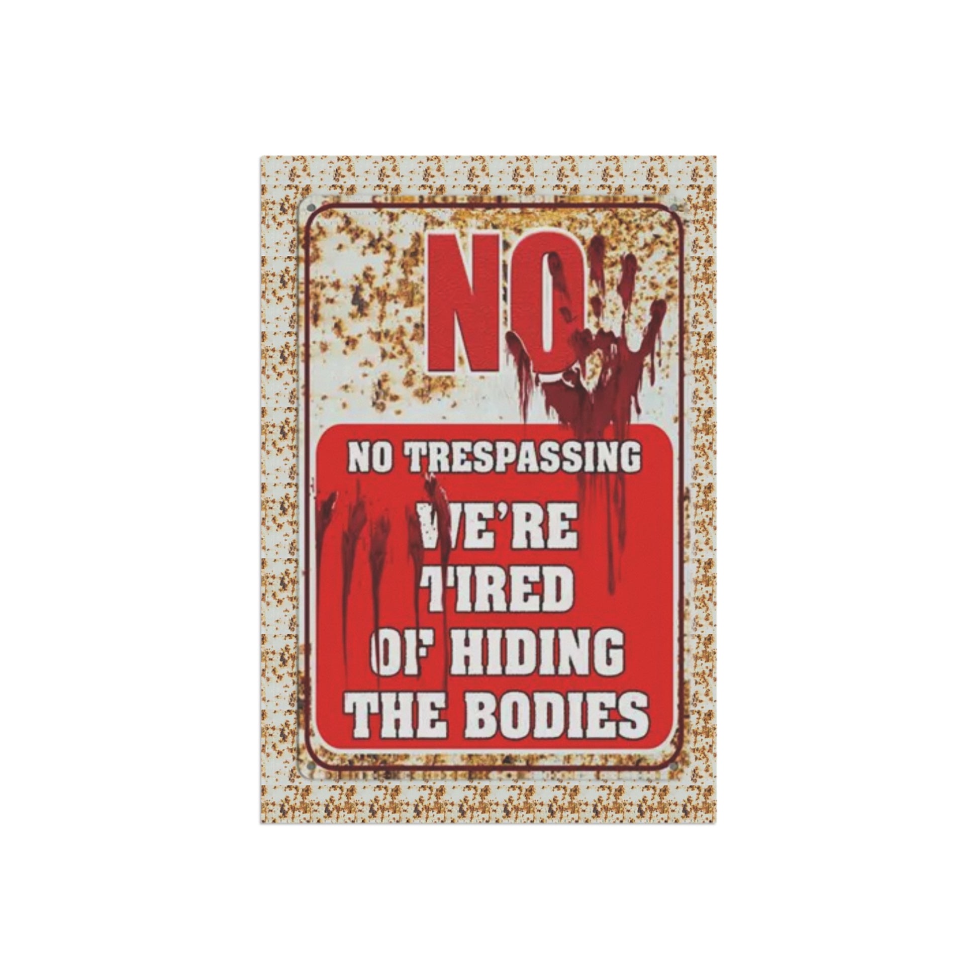 NO TRESPASSING WE'RE TIRED OF HIDING THE BODIES Garden & House Banner