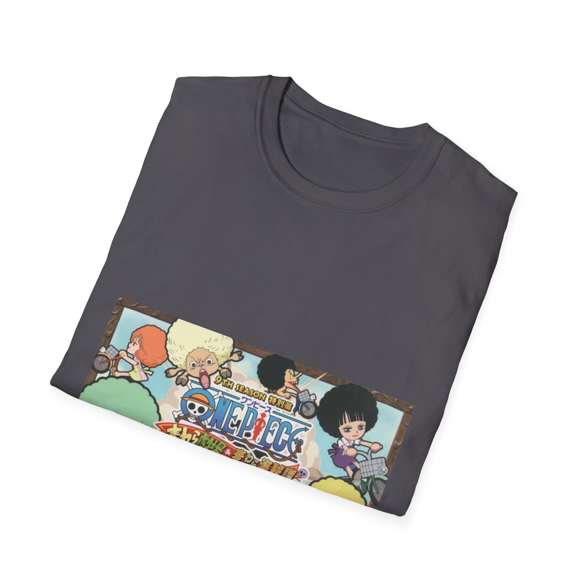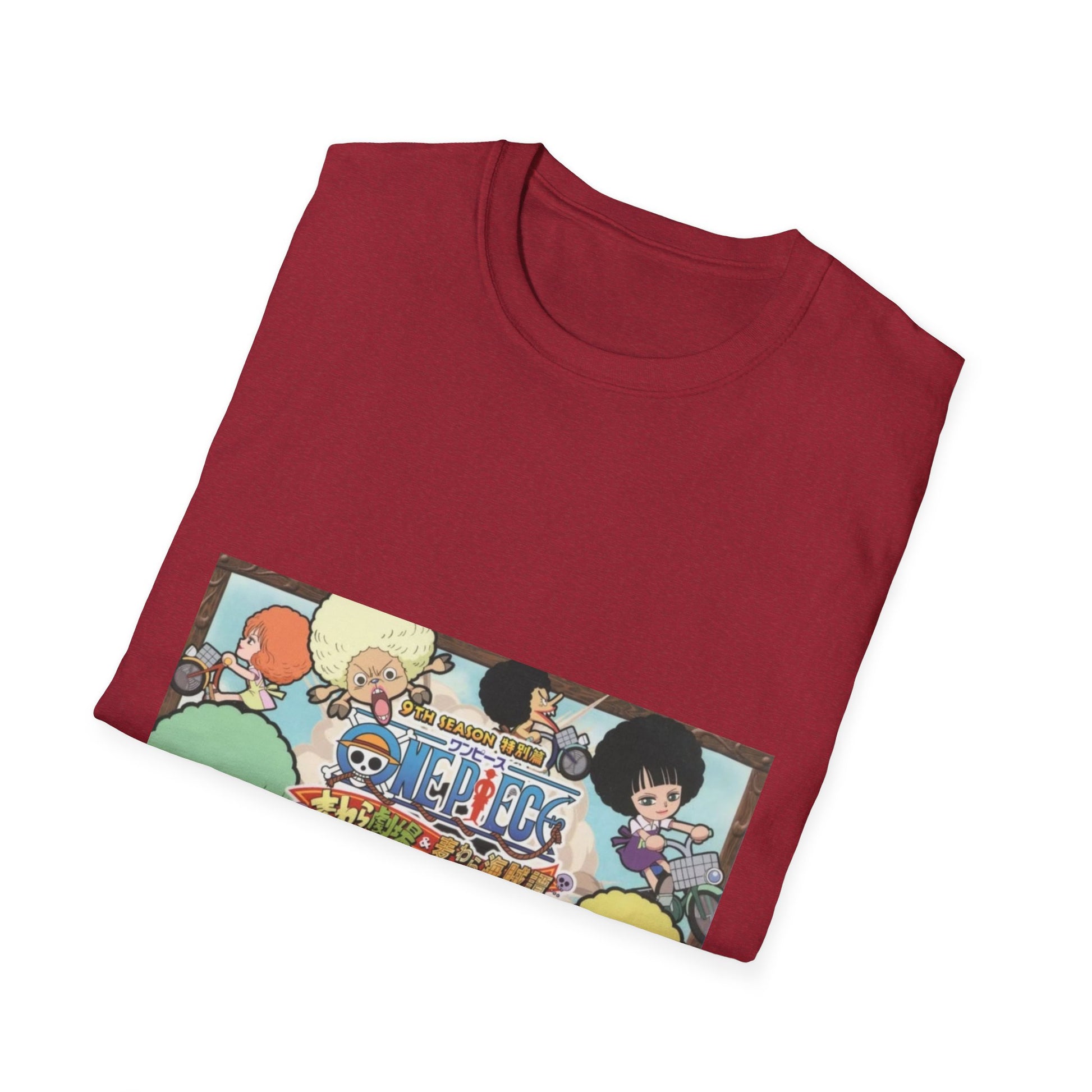 One Piece T-Shirt The unisex soft-style t-shirt puts a new spin on casual comfort. Made from very soft materials, this tee is 100% cotton for solid colors. Heather colors and sports grey include polyester. The shoulders have twill tape for improved durability. There are no side seams. The collar is made with ribbed knitting to prevent curling damage. One Piece T-Shirt