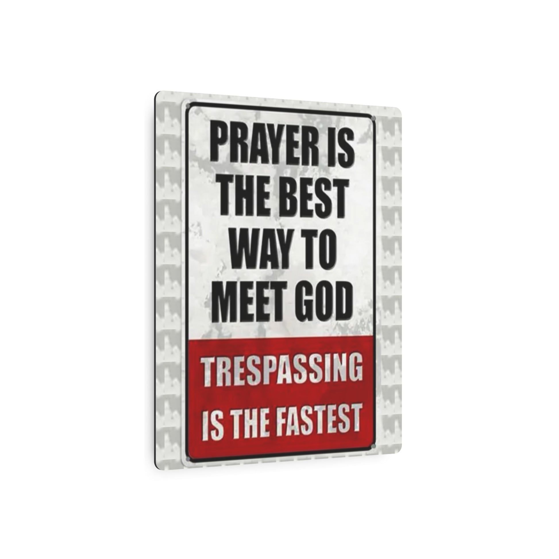 PRAYER IS THE BEST WAY TO MEET GOD TRESPASSING IS THE FASTEST Metal Art Sign
