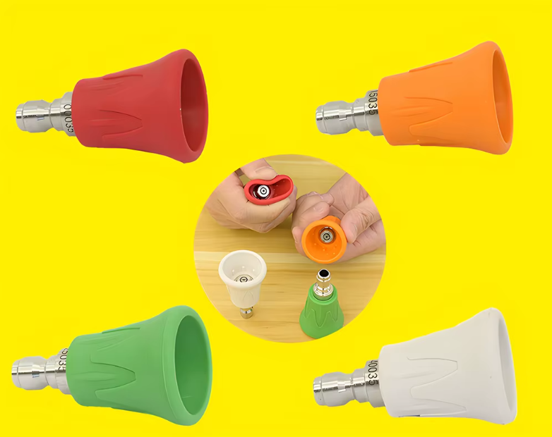 PRESSURE WASHER NOZZLE GUARD: The pressure washer tips are designed with rubber protective covers, which shields the nozzle from accidental impacts, damage, or abrasion. And power washer nozzle protector that protects your car paint safe from scratches during cleaning. This device not only extends the lifespan of the nozzle but also provides a safer cleaning experience by preventing accidental injuries.
