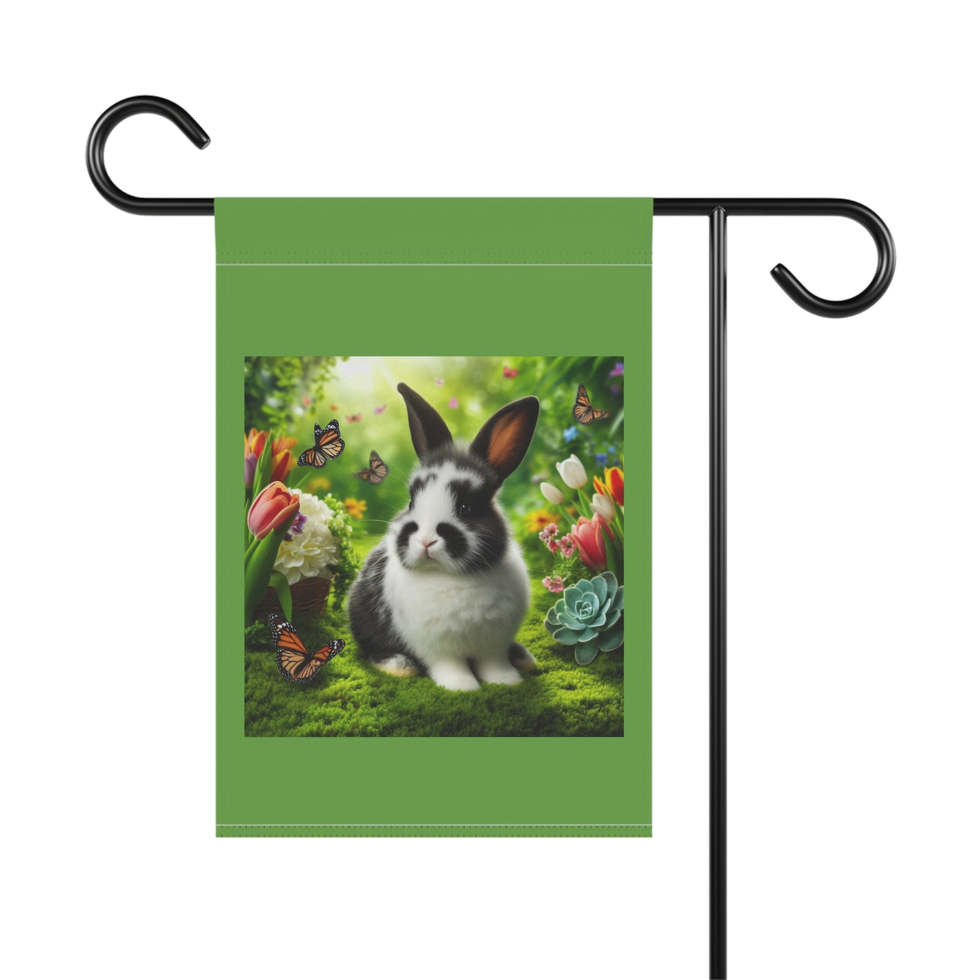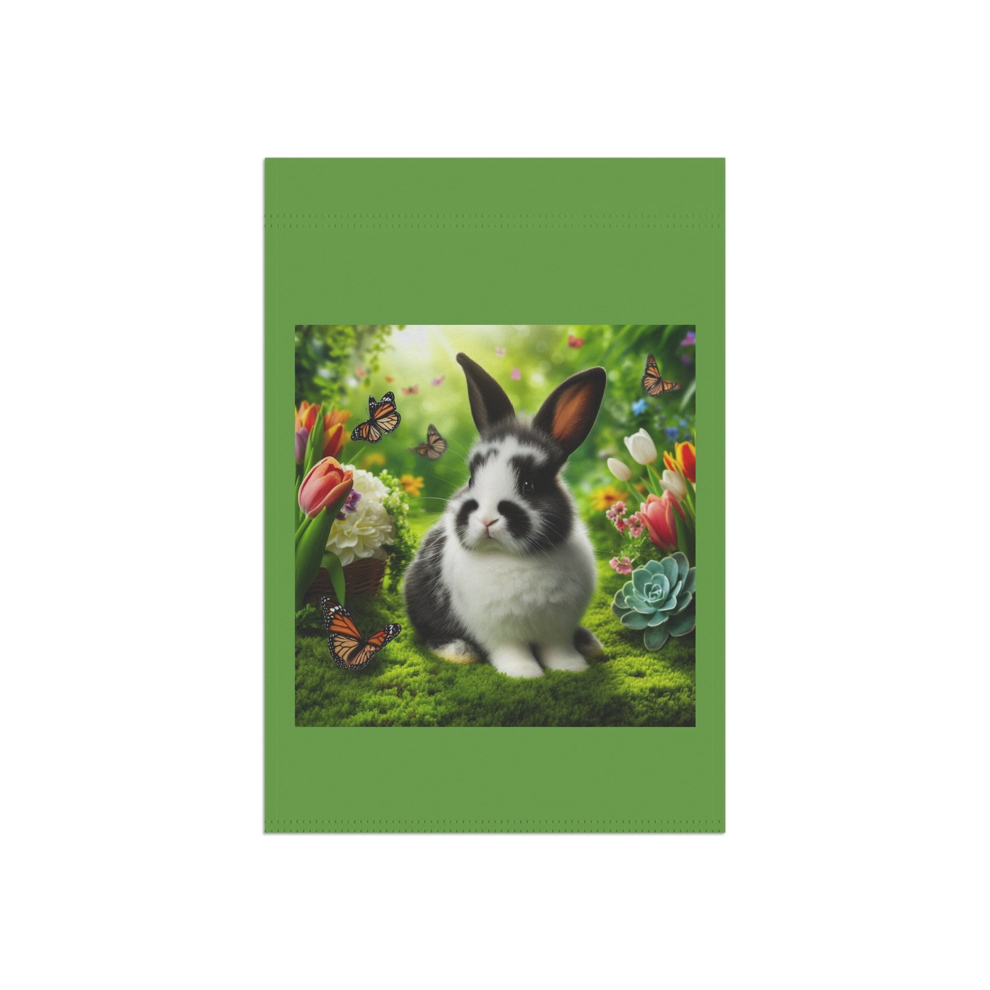 Spring Garden Banner with Rabbit and Butterflies
